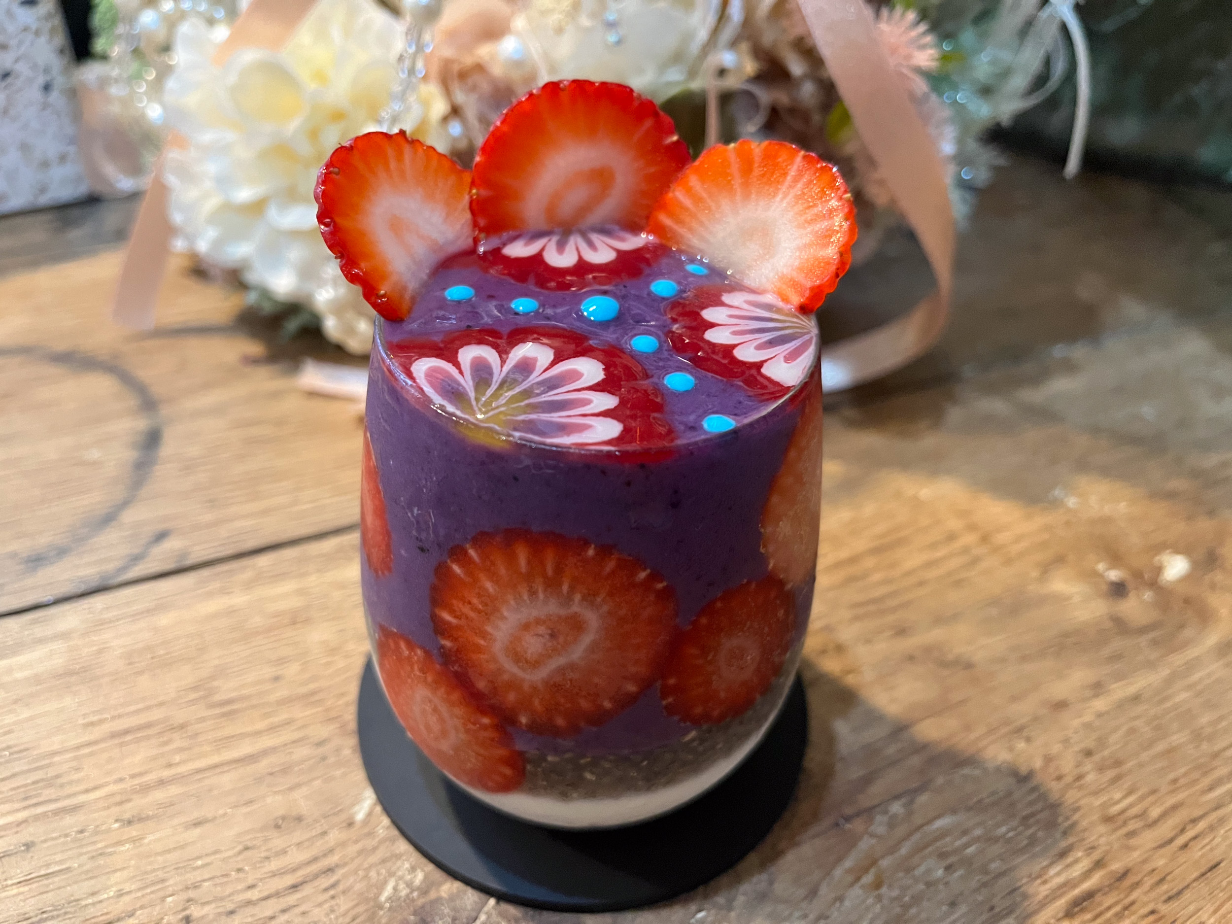 Et le résultat est fascinant, quand on pense que l’on a commandé un smoothie et on se retrouve avec cela. On n’a pas envie de le détruire !