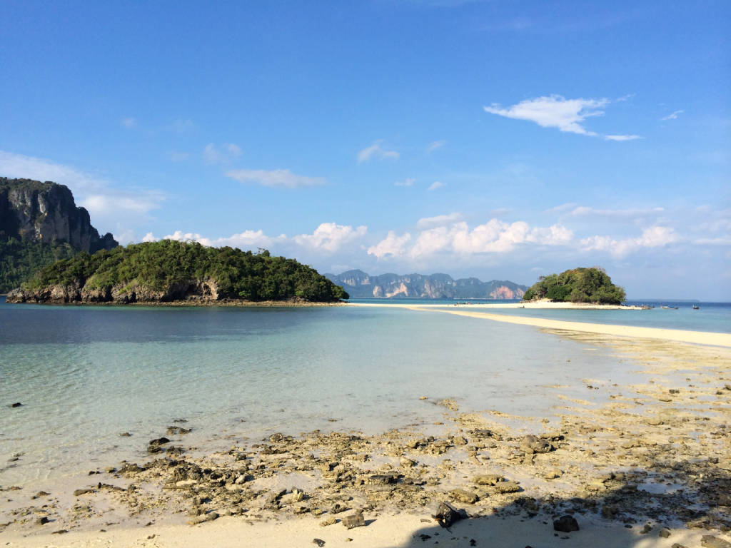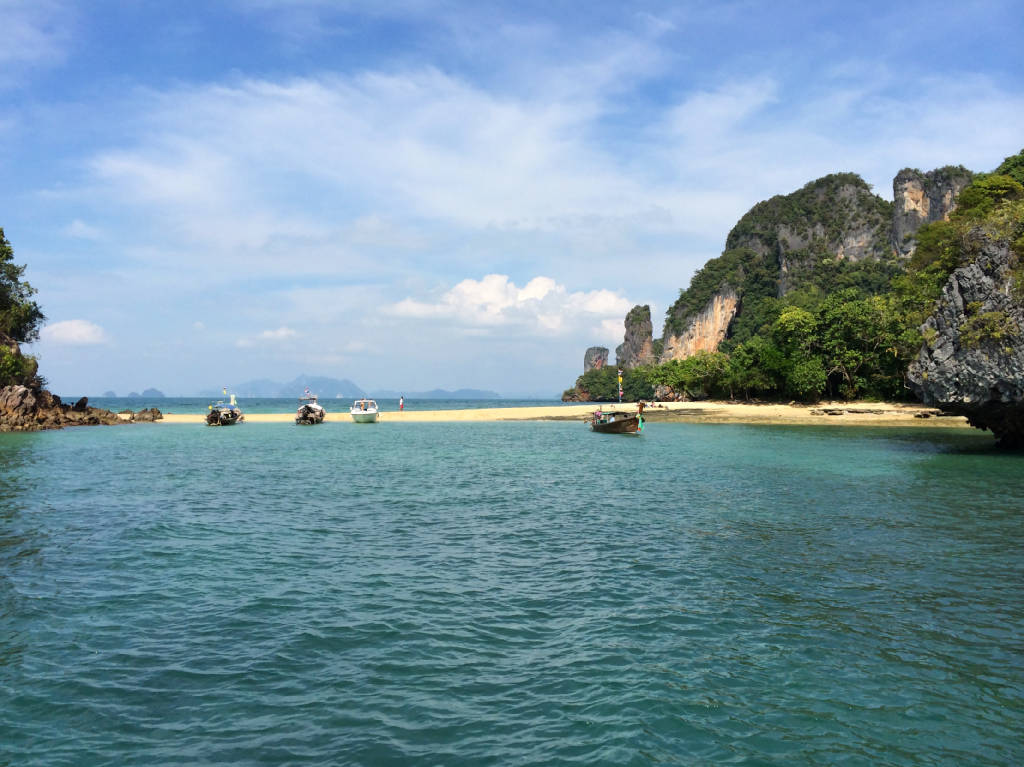 Les iles de Hong Island se situent à une heure de mer de Ao Nang, pour notre dernière journée en Thailande, nous prenons un bateau pour faire le tour des plages les plus intéressantes de ce petit archipel posé dans la baie. Encore une fois, le cadre est idyllique avec des plages de sable blanc nichées dans des criques calmes entourées de pains de sucres couverts de jungle luxuriante.