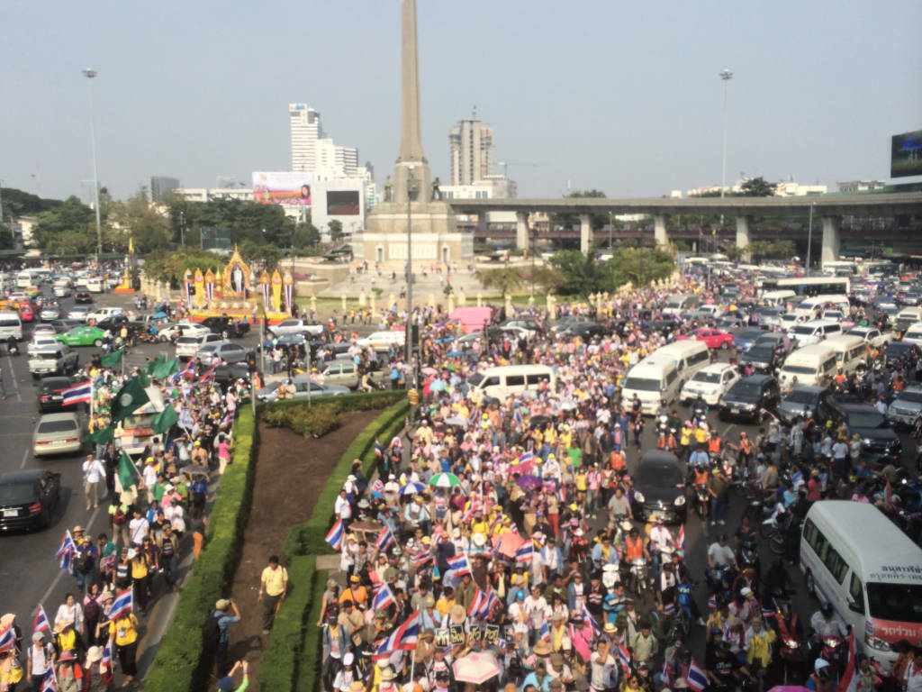 Pour ce deuxième jour à Bangkok, nous restons dans le quartier de Victory Monument, dehors le bruit des manifestants qui s'opposent au gouvernement ressemble à un bourdonnement continu de vuvuzela. La télévision diffuse des images de manifestations monstres et nous allons voir cela de plus près.
