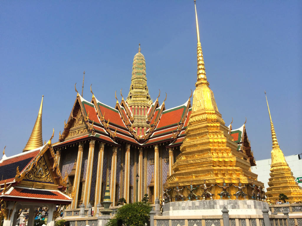 Dernière journée à Bangkok, les manifestations sont moins importantes et nous pouvons continuer notre programme de visite de Bangkok. La dernière fois, je n'avais pas pu visiter le Grand Palais, c'est donc une bonne occasion de retourner sur les bords du fleuve Chao Praya et de visiter cet immense complexe royal au coeur de Bangkok.