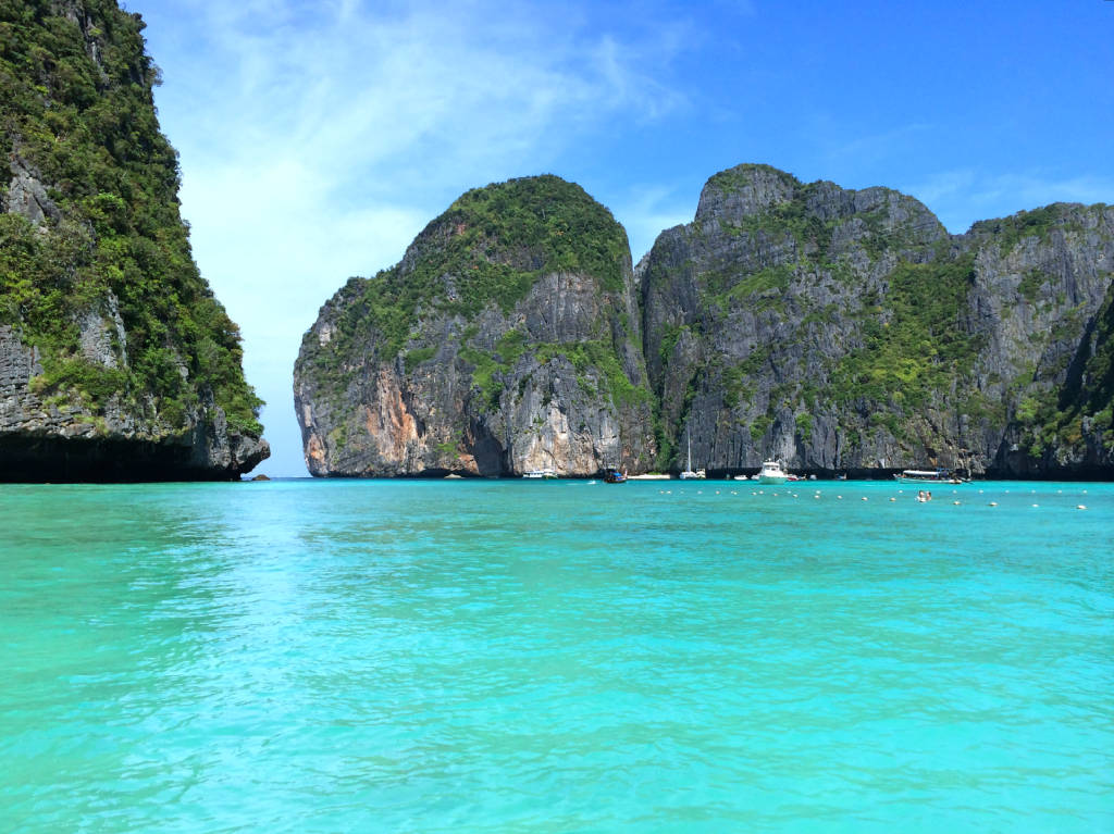 L'île de Koh Phi Phi est en fait constitué de deux îles. La plus petite, Phi Phi Leh se visite à la journée au départ de Phi Phi Don, l'île principale. C'est sur cette île constituée d'impressionnants pains de sucre couverts de jungle que l'on découvre une des splendeurs de la Mer d'Andaman. Jamais vu une telle palette de bleu sur la mer, entre le turquoise, le bleu pale, le bleu clair ou foncé, c'est tout simplement un de nos meilleurs souvenirs de voyage (article photo).