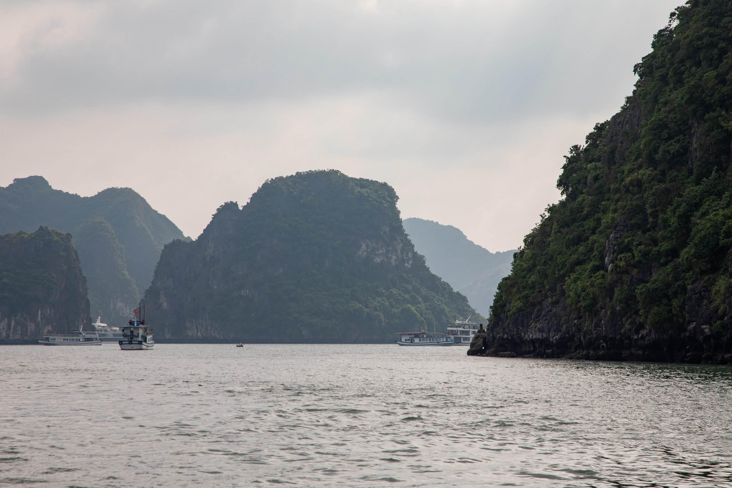 La Baie d’Halong est magnifique. Cet endroit mérite largement sa réputation avec ce paysage vraiment étonnant et l’ambiance de la croisière. Si nous devions revenir à Halong, je pense que je ferai un choix différent. On avait vraiment eu l’impression de faire le tour classique avec le gros de la foule et je suis sur qu’il y a un meilleur moyen de découvrir Halong. Sans y être allé, je pense que l’option de partir à Cat Ba d’abord puis de partir en croisière depuis l’île permettra de voir des paysages grandioses mais avec moins de touristes. Peut être que je me trompe et que j’idéalise un peu Cat Ba mais en tout cas la formule 2 jours 1 nuit ne nous correspond pas vraiment. Je ne dis pas que la croisière nous a déplu, c’était la première fois que l’on dormait dans un bateau et l’ambiance était super. Mais on aura tellement voulu passer plus de temps sur la plage et dans l’eau. Les vues depuis la cave, depuis le kayak et surtout depuis le promontoire à Titop mitigent le sentiment car c’est vraiment très très beau. Enfin, le temps est très important, on a eu beaucoup de nuages et cela a surement altéré les couleurs du paysage, mais d’un autre côté depuis que je suis enfant je rêvais de visiter la baie d’Halong dans la brume, cela doit être incroyable.