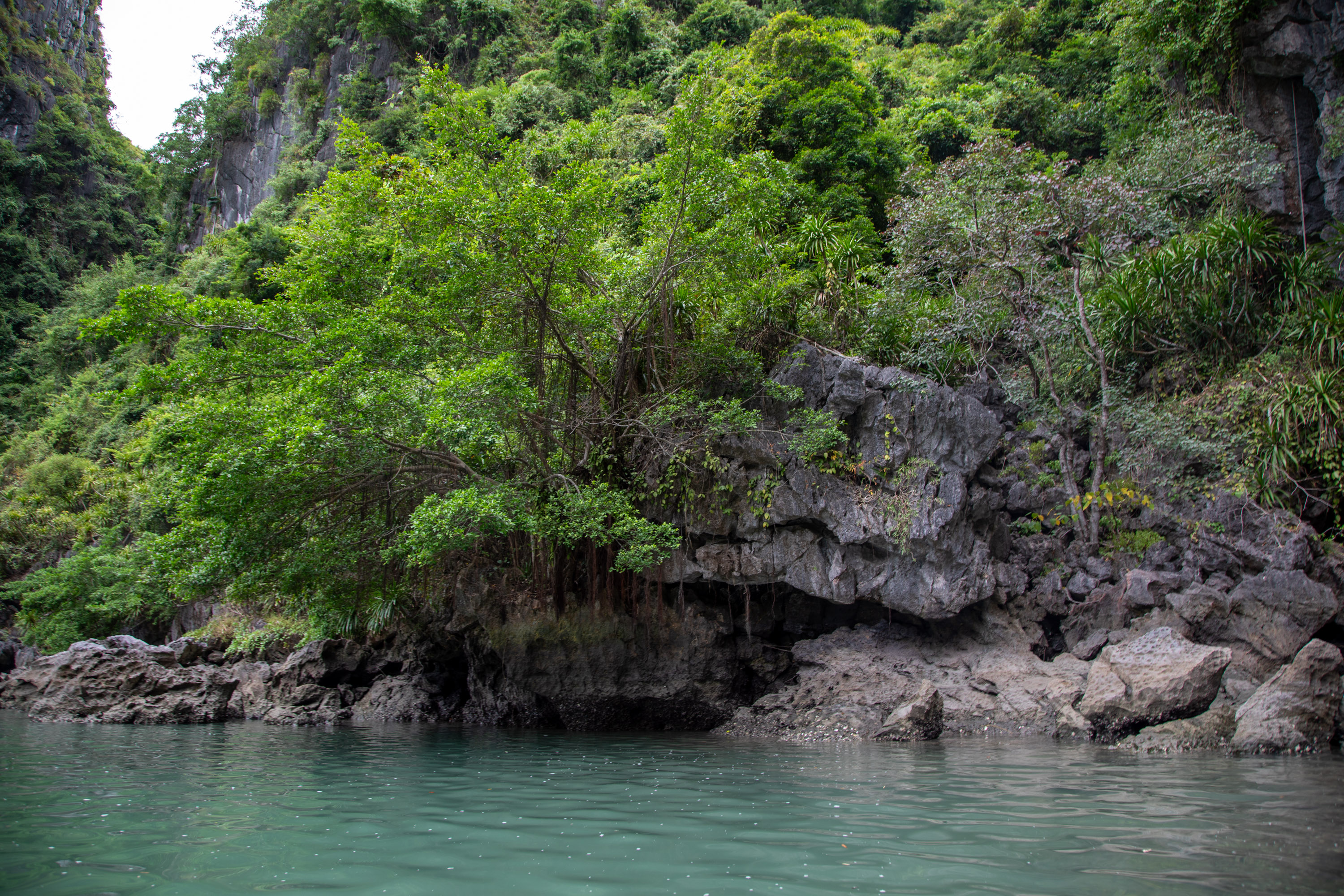 La végétation dans ce lagon est vraiment luxuriante, l'eau est d'un bleu émeraude, c'est magnifique.