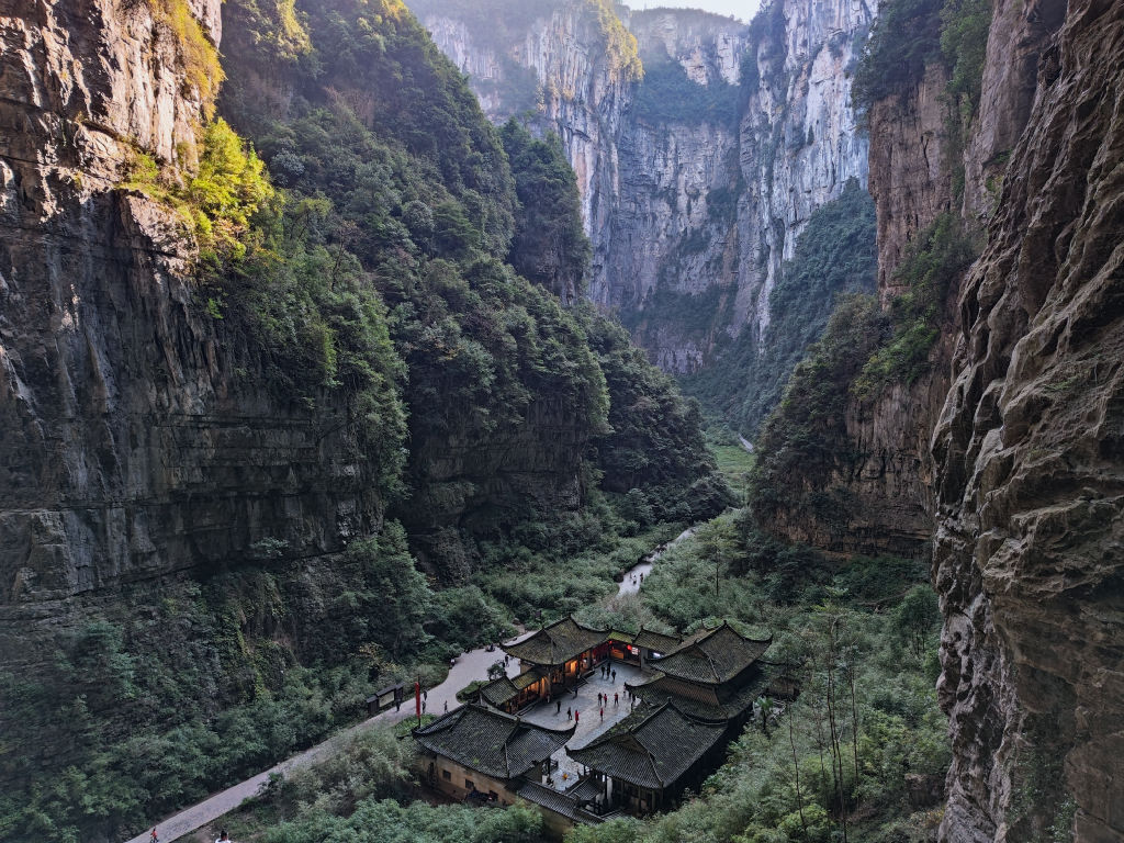 Chongqing est une municipalité mais la plus grande partie de la "ville" est en fait composé de campagne au charme fou. De belles montagnes traversées par de grands fleuves, comme les trois gorges du fleuve bleu, mais aussi la chaine de montagne de Xiannvshan qui est une destination fascinante pour un week-end. Puis ce temple, qui semble isolé dans cette fracture de karst classée par l'Unesco et qui est tellement photogénique.
