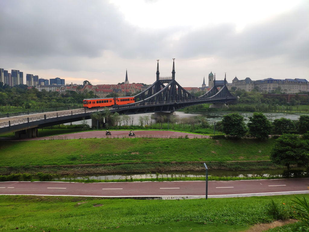 L'immense campus de Huawei, un des plus grands fabricants mondiaux de télécommunication a été installé au bord du lac Songshan à Dongguan au Nord de Shenzhen. C'est devenu un lieu de visite assez couru car son architecture s'est très largement inspirée de douze villes européennes afin d'abriter les immenses bureaux de R&D pour environ 25 000 employés sur 9km2. Lors d'une visite chez Huawei, nous sommes restés un peu sur le campus pour en découvrir l'architecture à bord du Huawei train, impressionnant !