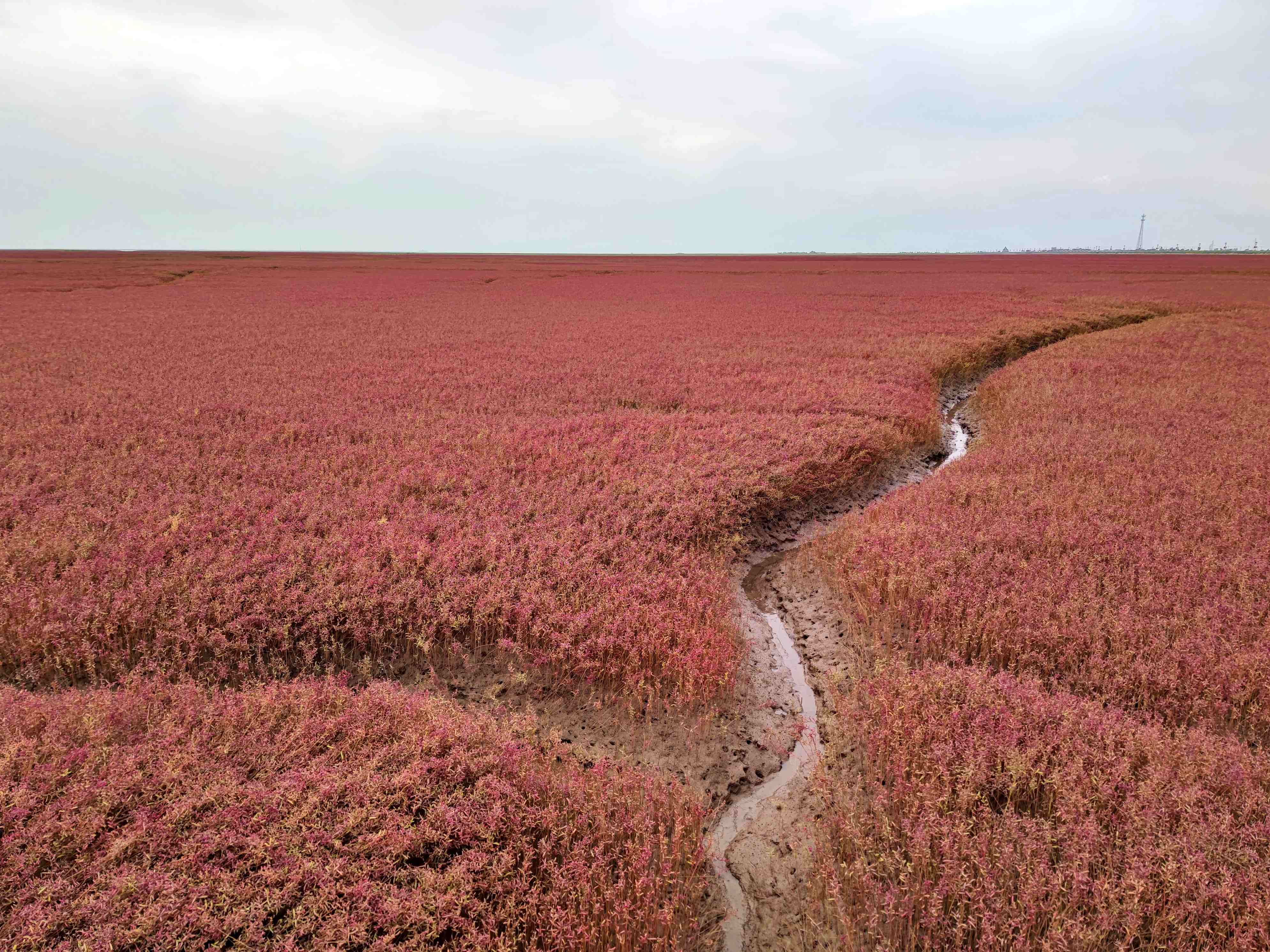 Dans la province maritime du Liaoning du Nord Est de la Chine se trouve un phénomène naturel étonnant récemment révélé par des sites de voyage comme Tripadvsior, c’est la plage rouge de Panjin. Cette « plage » est en fait une grande étendue de terre mouillée par les marées dans l’estuaire du Liaodong sur laquelle poussent de petites plantes dont les feuilles prennent une teinte rouge en automne. Cette particularité se retrouve à différents endroits de la mer de Bohai, notamment dans l’estuaire du Fleuve Jaune dans le Shandong, mais c’est à Panjin que la zone a été aménagée, c’est la principale attraction de Panjin, une ville industrielle relativement prospère tournée vers la pétrochimie