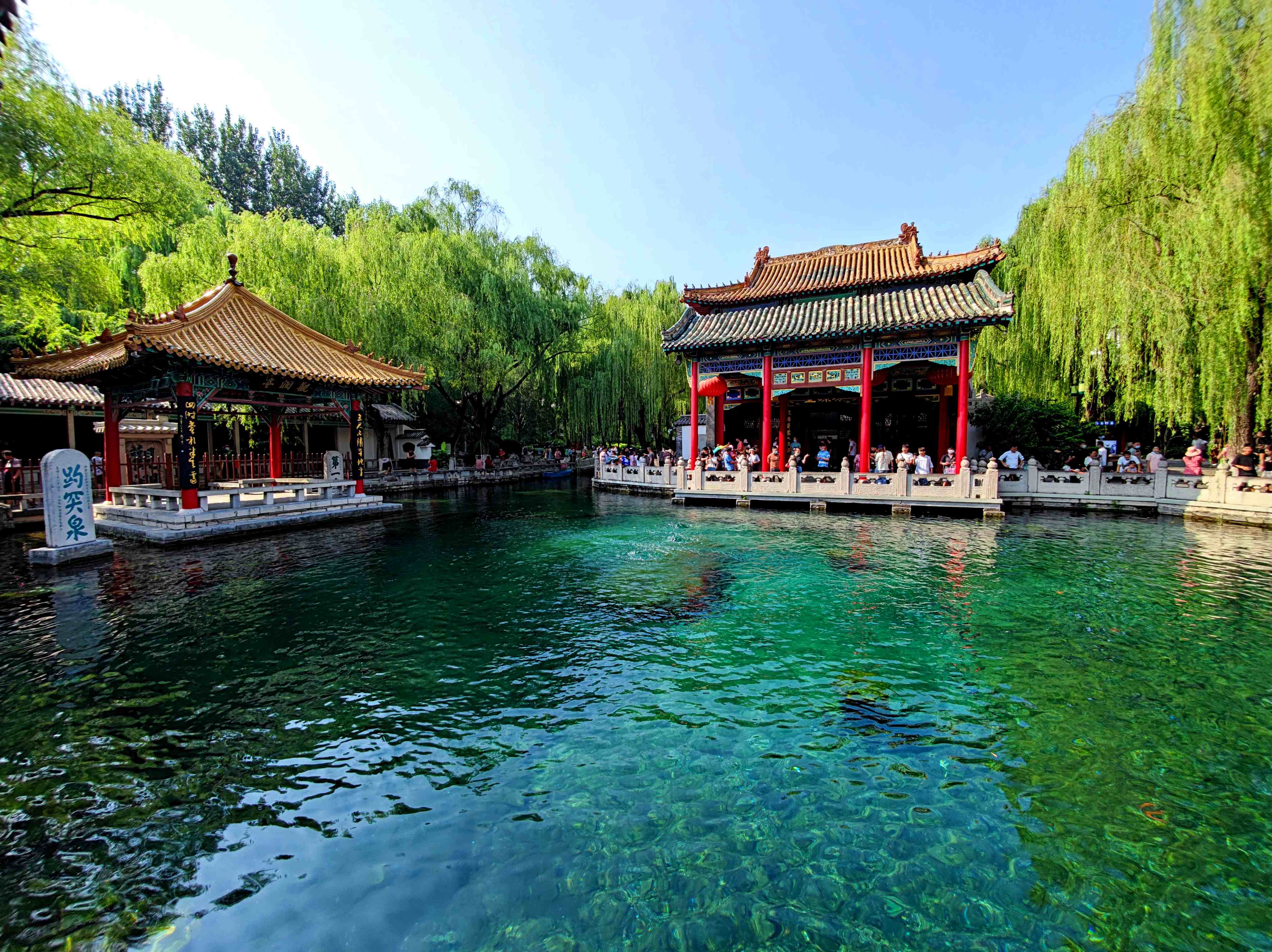 Jinan est la capitale de la province maritime du Shandong mais elle se situe au cœur des terres fertiles de cette région réputée pour son agriculture. Située entre Beijing et Shanghai elle bénéficie d’une économie prospère mais sa taille humaine lui donne cette atmosphère provinciale très agréable. Jinan est réputée pour ses nombreuses sources résurgentes du sol calcaire, qui se déversent toutes dans le lac Daming au Nord de l’ancien centre-ville. Ces sources et bassins couleur turquoise ont été contées par de nombreux artistes classiques que les écoliers chinois apprennent à l’école. On peut visiter plusieurs parcs construits autour des sources résurgentes avec de très beaux bâtiments. Ce sont les attractions principales de Jinan qui n’est pas du tout une ville touristique, surtout à comparer des « poids lourds de la région » que sont Taishan, Qingdao ou Qufu.