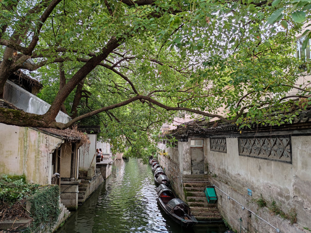 A une cinquantaine de kilomètres, la ville de Shaoxing est une des capitales du textile, une ville industrielle mais qui a réussi à conserver une partie de son centre ville traversé par des canaux et de maisons blanches aux toits noirs, typiques du Sud du fleuve Yantze. Il faut faire vite néanmoins, la ville vit sous la pression immobilière et l'on voit un peu partout soit des chantiers de destruction de ces vieux quartiers, soit le fameux caractère "à démolir" peint à la bombe rouge sur le mur principal.