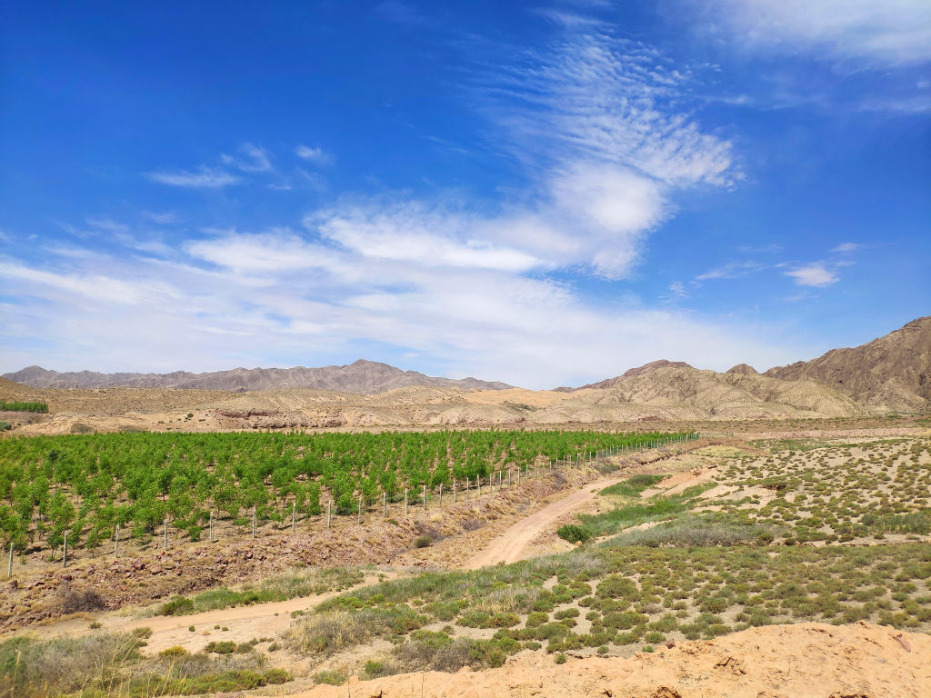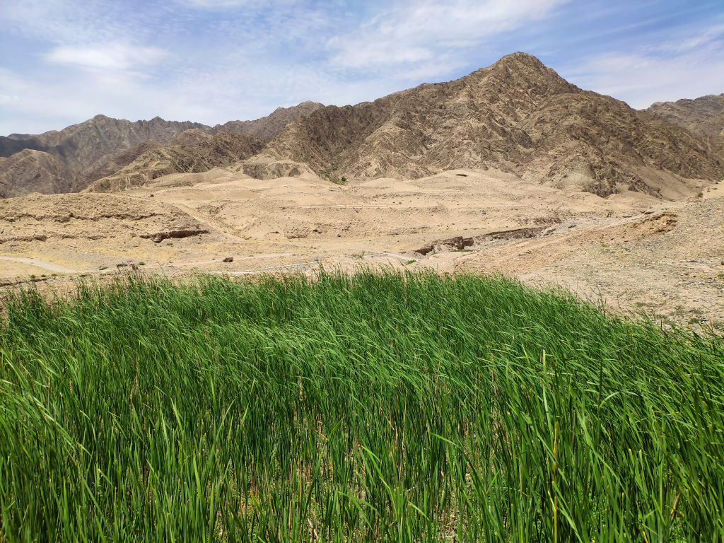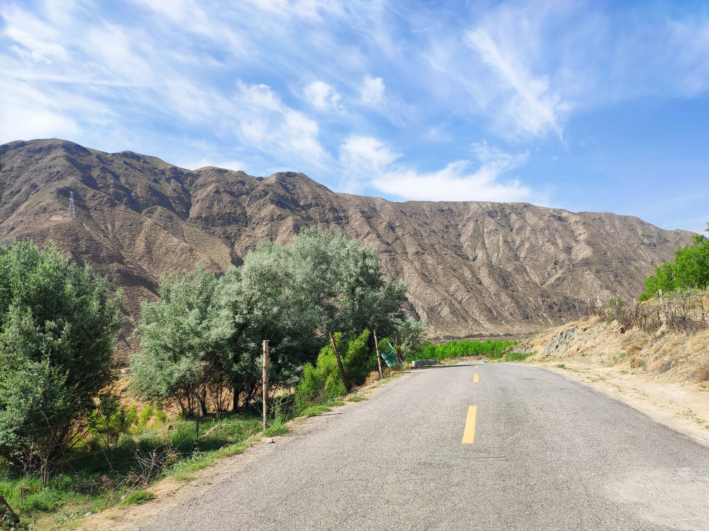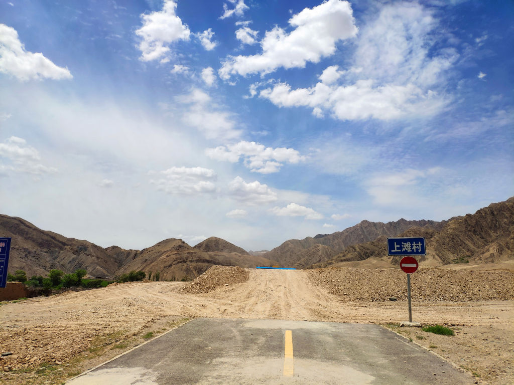 Pour cela, on sort de l’autoroute à la sortie après Shapotou et tout de suite on prend une petite route sur la droite qui passe sous l’autoroute et s’enfonce dans les montagnes en direction du village de Beichangtan. Les différents points de vue depuis la route qui se trouve derrière ce virage va nous éblouir.