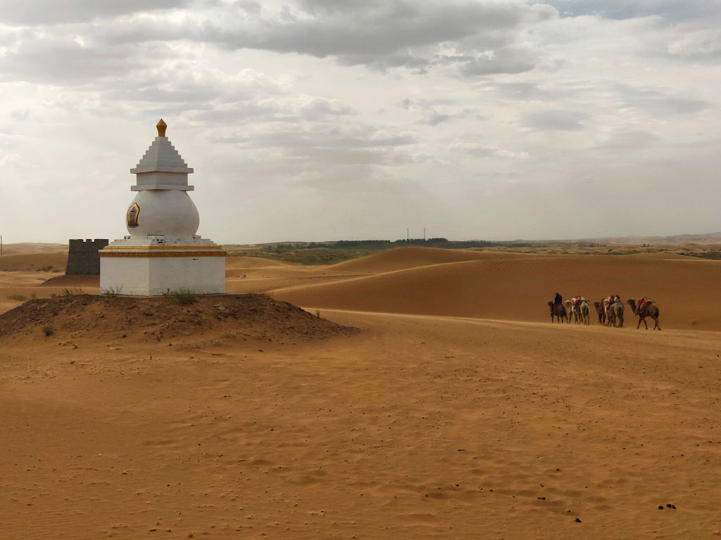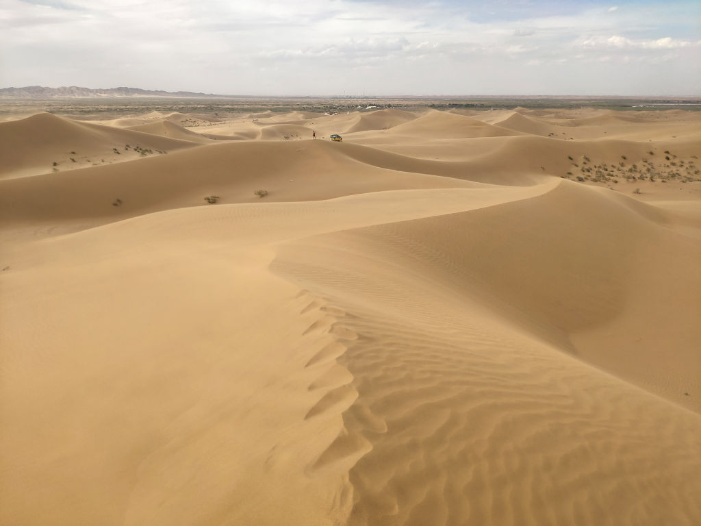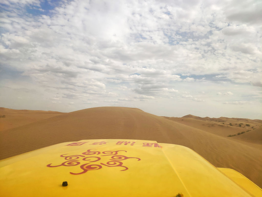 Le site des grasslands de Tonghai est malheureusement développé de la même manière que son cousin Shapotou, avec un ticket d’entrée, un parking et une navette et toutes les activités associées au désert. Ici le thème, c’est la culture mongole. Autour de ce parc d’attraction, le paysage est déjà magnifique. On se dit qu’étant arrivé jusqu’ici on va quand même entrer avec un but, louer une Jeep et faire un tour dans les dunes, comme tout le monde.