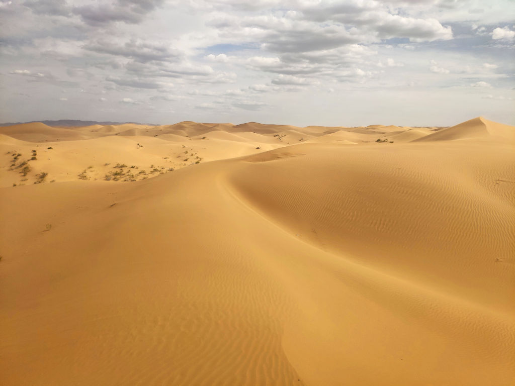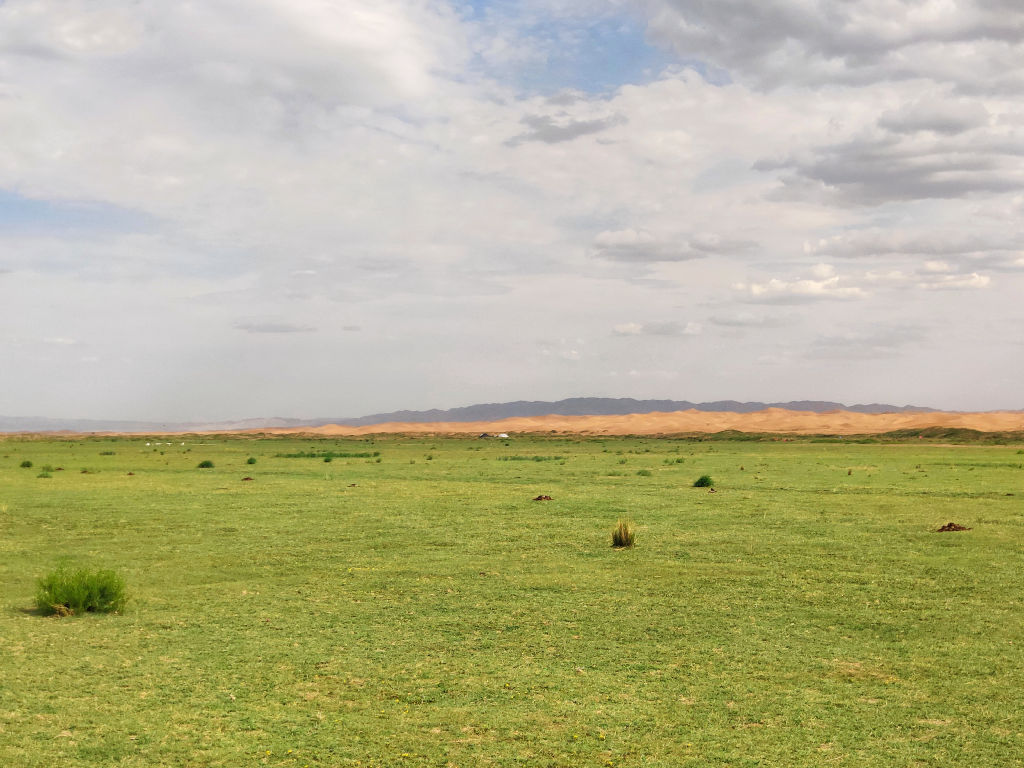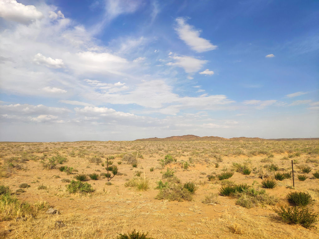 Puis nous arrivons dans un futur parc industriel avec des usines de gaz naturel. Après cela, on retrouve le désert avec de petites dunes, et puis la route s’enfonce dans la steppe mongole. Un immense plateau avec quelques bosquets. On est vraiment comblé.