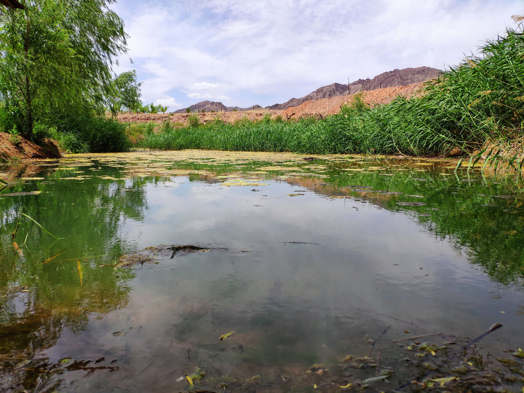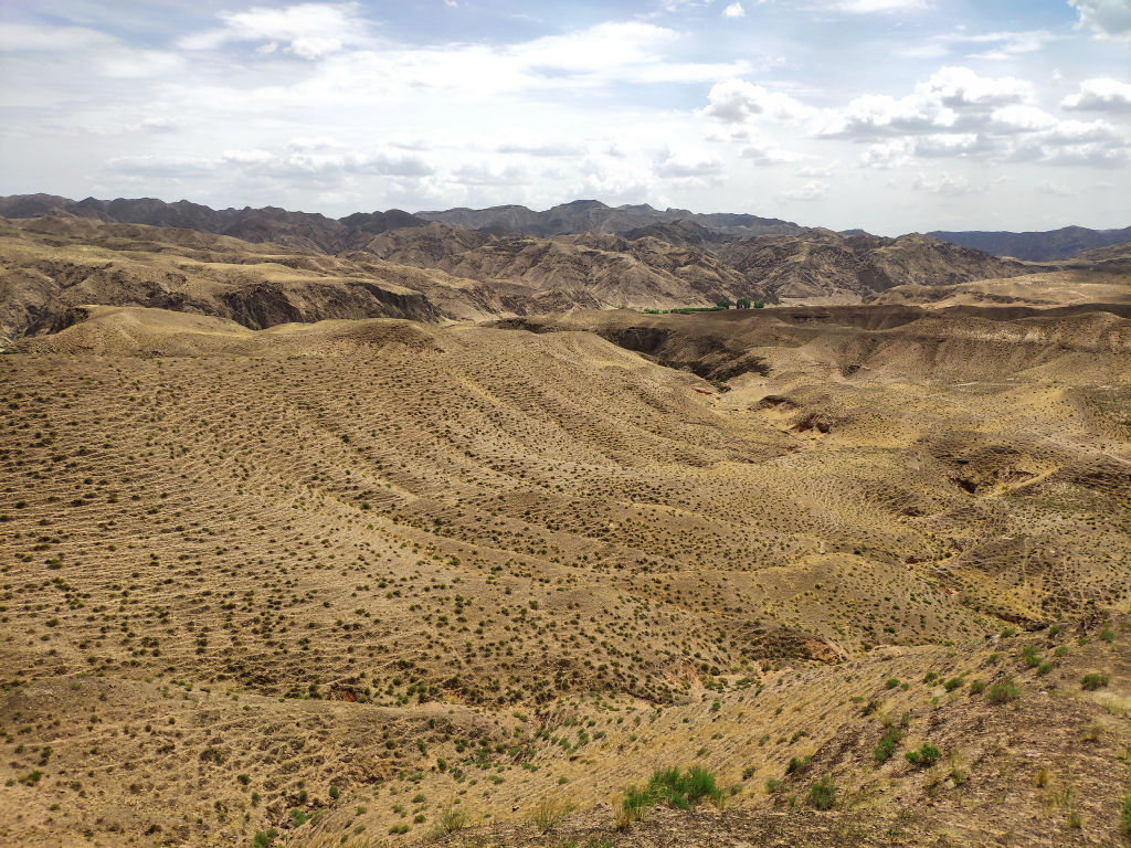 Pour la deuxième partie de la journée, on retourne à la sortie d’autoroute car un panneau indique les destinations d’intérêt touristiques de la région autour de Zhongwei. Il y a plusieurs possibilités mais on doit faire un choix car ce soir nous devons rendre la voiture à Yinchuan à 3 heures de route d’ici. On aurait voulu aller à Nanchangtan, sur la rive opposée à Beichangtan, un magnifique village conservé, mais selon un chauffeur à qui on pose la question, il faut compter au moins trois heures de route par une route difficile. Une autre solution serait de retourner vers Yinchuan et de visiter le site montagnard de Sikou, mais finalement on fait le choix de partir vers les grasslands de Tonghai, à 35 kilomètres. On traverse à nouveau Shapotou par la nationale et on en profite pour s’arrêter à proximité de la dune qui fait face au fleuve jaune, la route passant juste à côté.