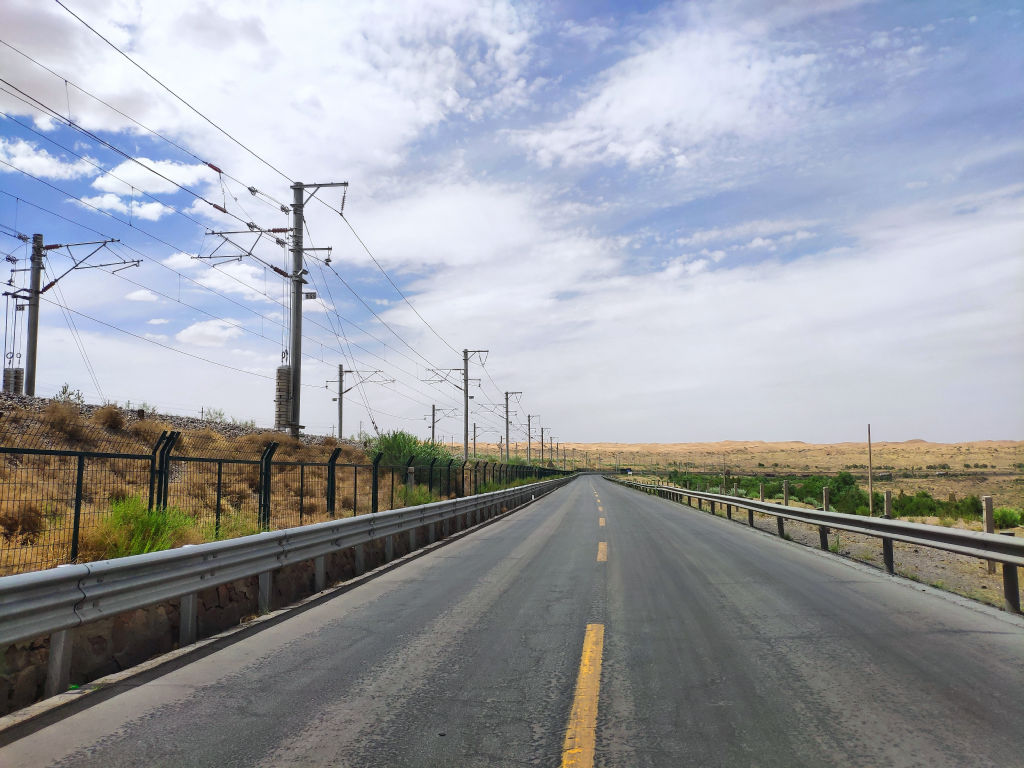 Pour rentrer sur Yinchuan, le GPS nous propose une route alternative à l’autoroute de Zhongwei, en passant par la route qui traverse Alashan jusqu’à Wuzhong. C’est beaucoup plus direct mais un peu plus long. Nous décidons de prendre cette route pour changer. Quelle bonne décision nous avons pris. Cette route, entre Alashan et Wuzhong est incroyable.