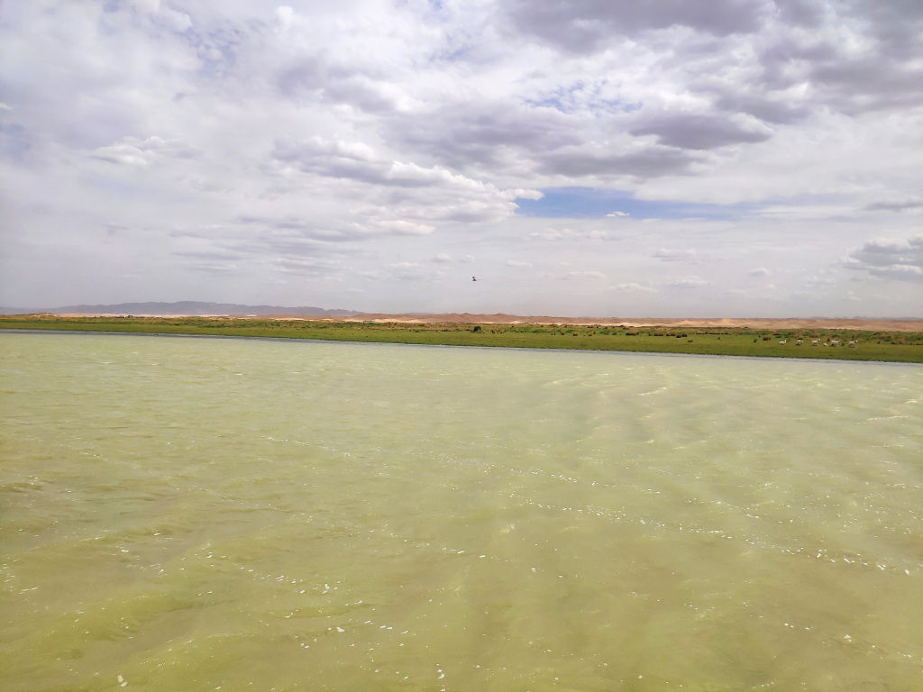 On est surpris et en même temps content de voir que pour aller aux grasslands il faut changer de région, on quitte donc la région du Ningxia pour entrer en Mongolie Intérieure. Ici les panneaux sont bilingues chinois mongol. Nous entrons dans la ligue d’Alxa (ou Alashan).
