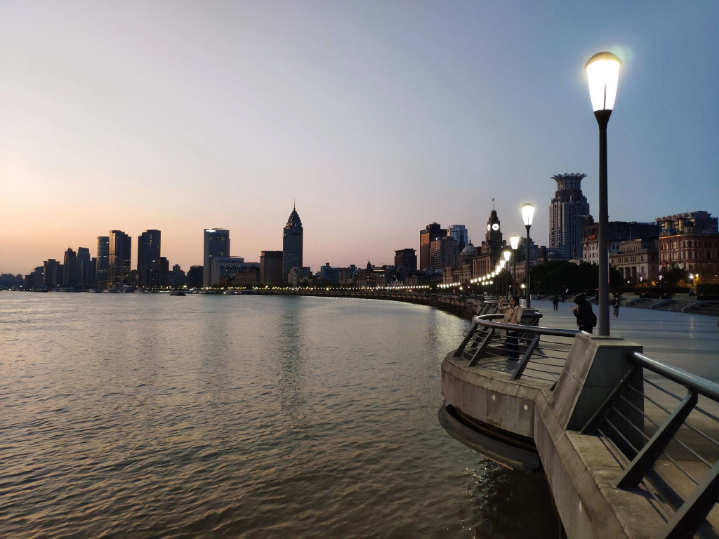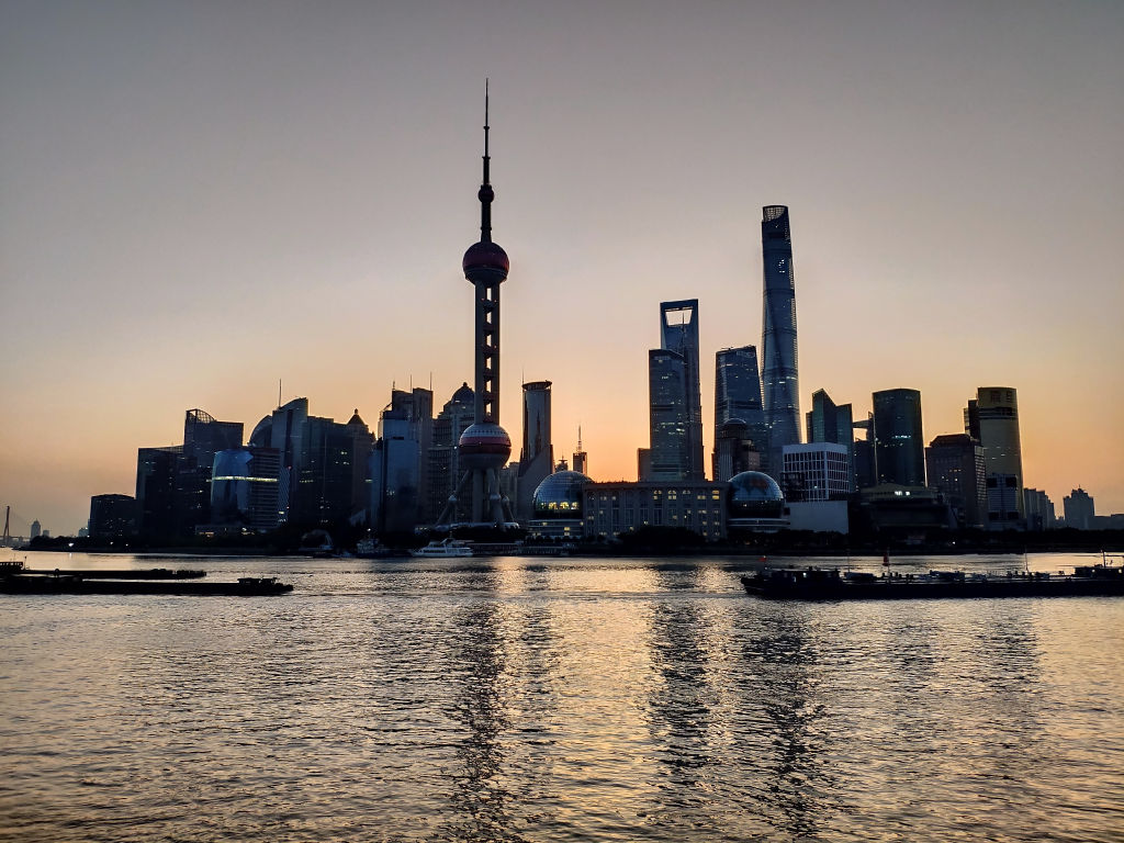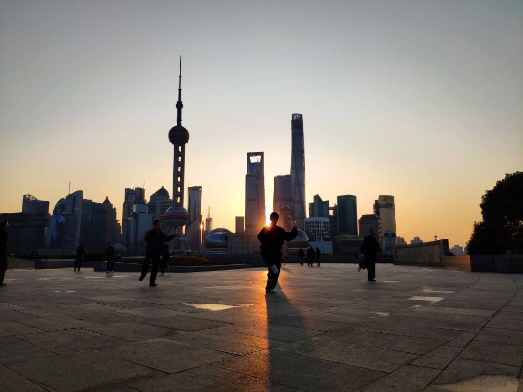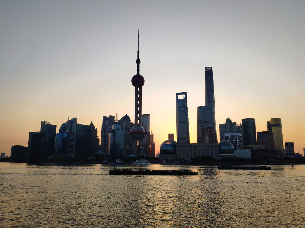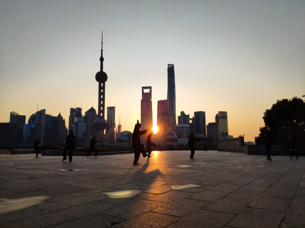 Mais je prends mon courage à deux mains, je m'habille chaudement et pars à jeun rejoindre le taxi réservé sur didi. Arrivé sur la plus belle esplanade de Chine, le moment est magique. Il fait très froid, au bord du Huangpu il y a une brise glacial qui glace le visage. Les tours de Pudong sont dans l'ombre et le ciel a des teintes pastel en fond.