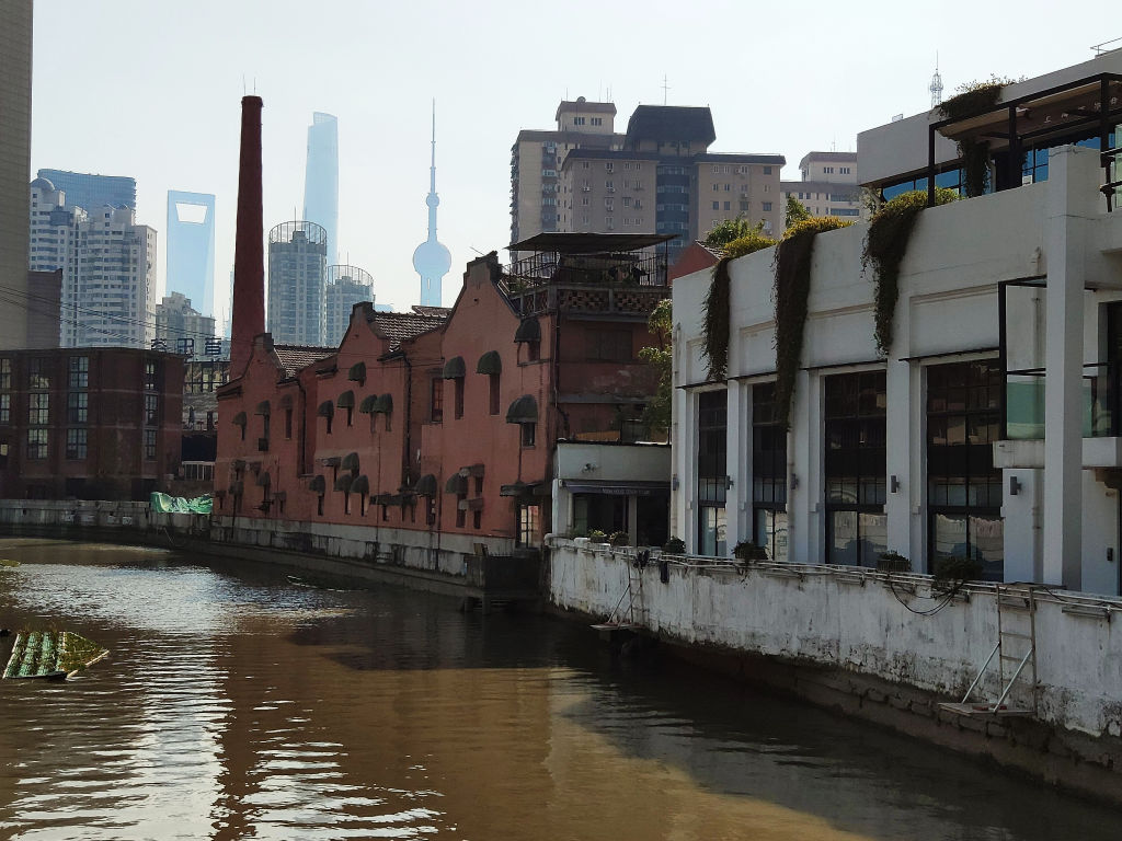 On se promène dans les environs pour reprendre le métro pour la suite de la journée de redécouverte de Shanghai. On tombe sur ce canal avec une belle vue sur les tours de Pudong.