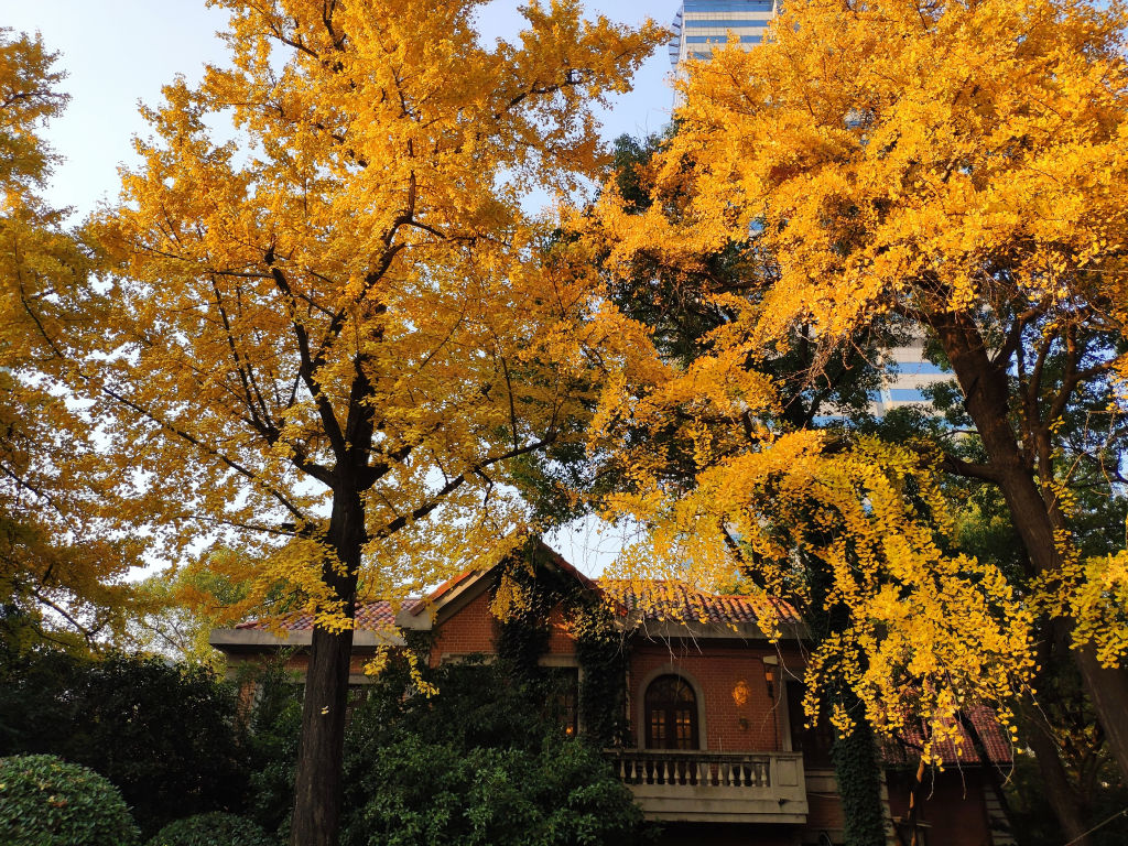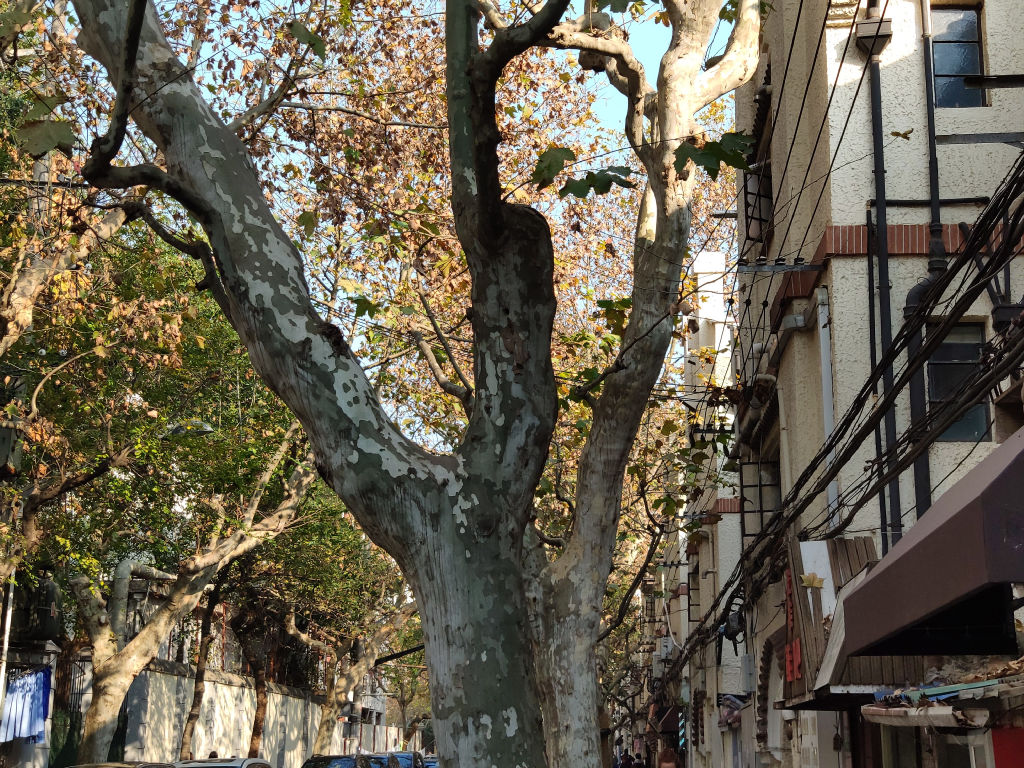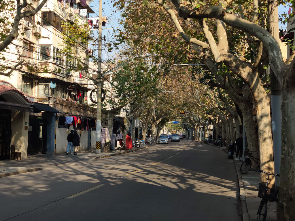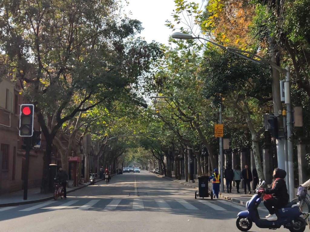 On ressort dans la concession française. Alors que l'on est déjà en Décembre les arbres se parent encore de couleurs d'automne, et les vieilles rues de la concession française sont un parfait cadre pour les admirer avec ses rues bordées de platanes.