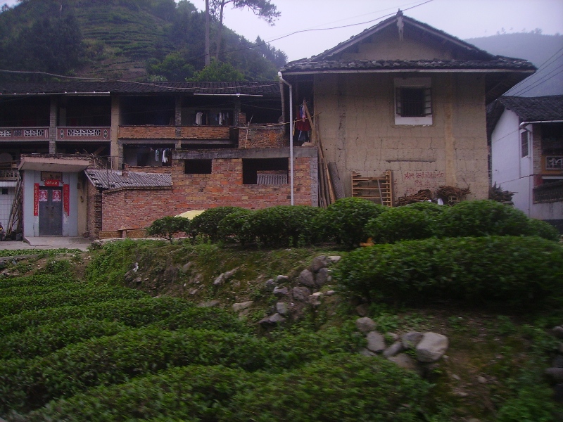 C’est le moment de dire au revoir à nos hôtes qui nous auront vraiment touché par leur accueil, pour prendre le bus, nous devons passer dans la cour d’un des voisins, éviter le thé qui sèche par terre, passer sous les fenêtres de grand mères qui nous font des signes de la main, puis prendre la route de terre sur quelques mètres. Le bus, plein, ne mettra pas trop longtemps à se vider (et aussi à vider l’estomac d’un des passagers), nous trouverons finalement des places assises jusqu’à Xiamen.