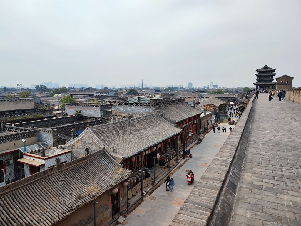 En cette période spéciale de COVID, le plan initial pour partir en Asie du Sud Est comme chaque année est annulé. Il est fortement déconseillé de sortir du territoire chinois, sous peine de refaire une quarantaine dans un hôtel miteux de Shanghai. Je compte quand même profiter de ces quelques jours pour découvrir des nouveaux endroits, malgré le fait que tout le monde a envie de la même chose au même moment, rendant le voyage en période de congés nationaux très éprouvant parfois. Je décide de partir en direction de la région du Shanxi dans le Nord de la Chine. Cette région est réputée pour son histoire, la richesse de son patrimoine culturel, bastion chinois proche de la frontière du passé, des steppes de Mongolie et de ses guerriers sans pitié. Je pars de Hangzhou tôt avec un vol matinal en direction Taiyuan, la capitale de la province du Shanxi. Je ne m’arrête pas dans cette grande ville et je file directement vers la ville impériale de Pingyao. Les transports sont vraiment pratiques depuis l’aéroport, un bus direct emmène les quelques voyageurs directement du parking de l’aéroport à l’entrée de la ville. Il suffit ensuite de prendre un taxi jusqu’aux portes de la ville fortifiée. Pingyao est en effet encerclé par une imposante muraille sur laquelle sont érigées des tours de guets.