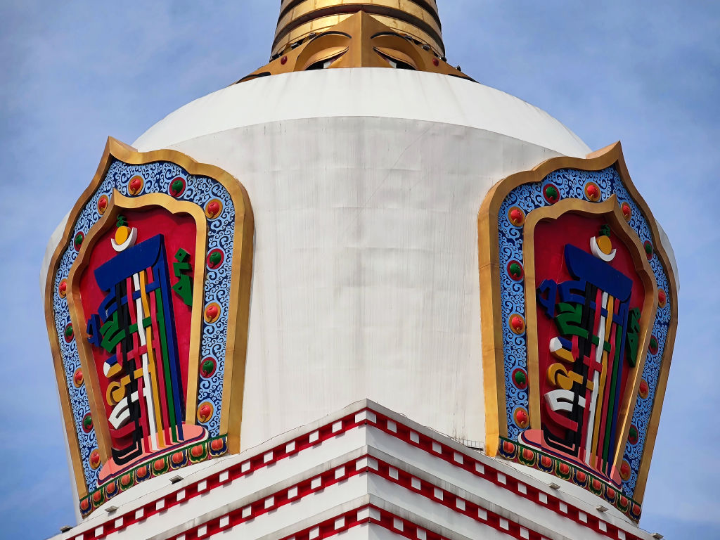 Les yeux de la stupa regardent dans les quatre directions depuis le sommet