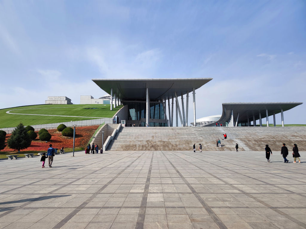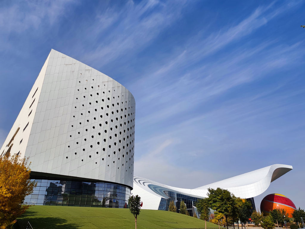Je poursuis ma visite en vélo par le musée de Mongolie un superbe batiment qui ne semble pas encore tout à fait fini qui est censé faire référence aux steppes verdoyantes de la Mongolie, le résultat est pluôt intéressant.