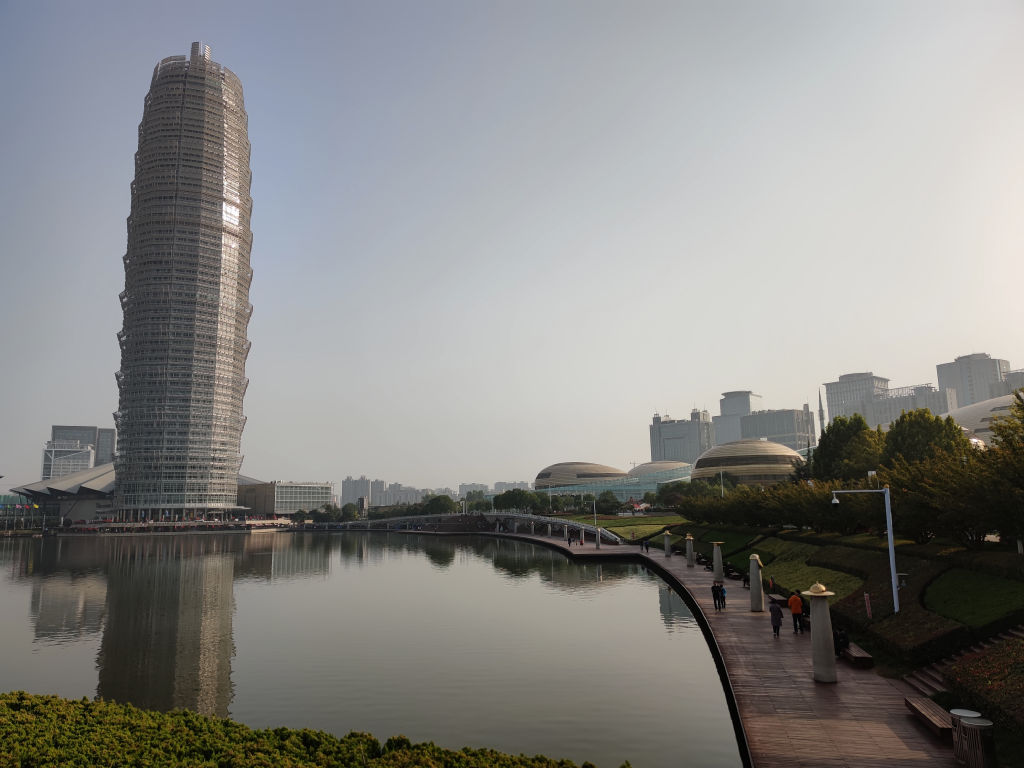Depuis l’Est de la Chine, il faut environ 4h de train à grande vitesse pour rejoindre Zhengzhou. On traverse la grande plaine, pas beaucoup de relief. La gare de Zhengzhou est moderne et construite à proximité du CBD de la ville.