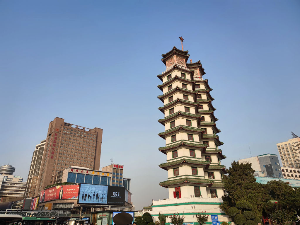 Zhengzhou n’a pas beaucoup de monuments à visiter. Ce n’est pas une ville touristique du tout. C’est un centre industriel qui bénéficie du transfert des industries des côtes vers l’intérieur. En fait, la ville a été bombardée pendant la guerre par l’armée japonais, aujourd’hui difficile de croire que derrière ces rangées bâtiments de béton et des avenues sans charme particulier était édifiée la première capitale d’une civilisation en Chine. On est vraiment au cœur de l’histoire sans pourtant le deviner. Aujourd’hui un des monuments les plus emblématiques de la ville se trouve être une tour moderne de verre, dans le quartier des affaires.