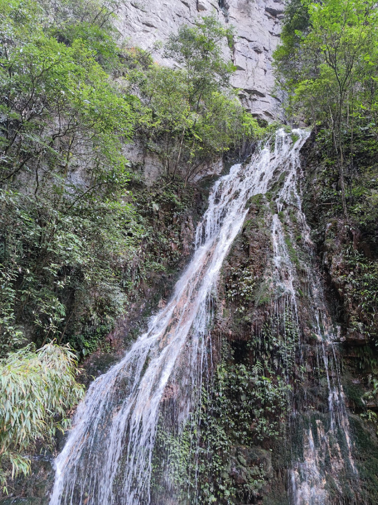 On croise de nombreuses cascades qui sortent de cavités dans le karst et rejoignent le ruisseau principal. On entend de nombreux oiseaux, dont un aigle. Sur un panneau, on apprend que le parc abrite une faune et une flore très riche, dont un fameux pangolin. Mais on n'en verra rien.