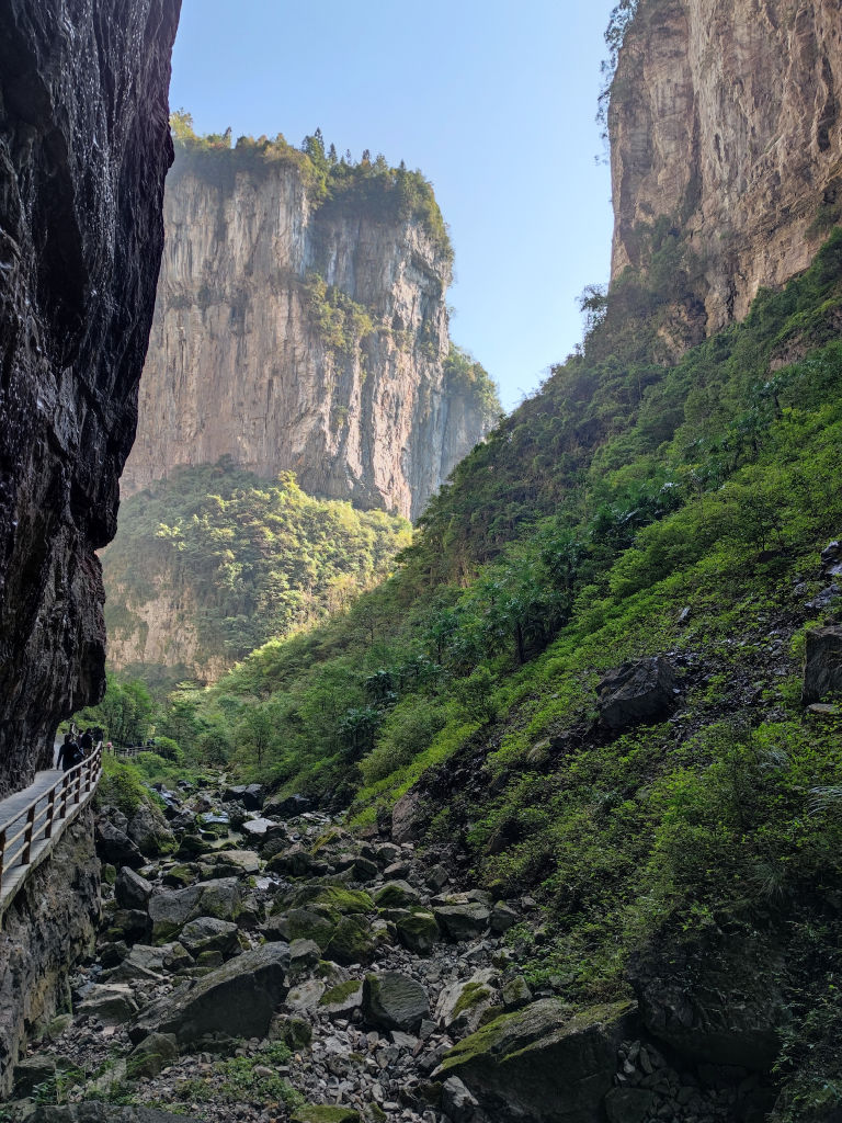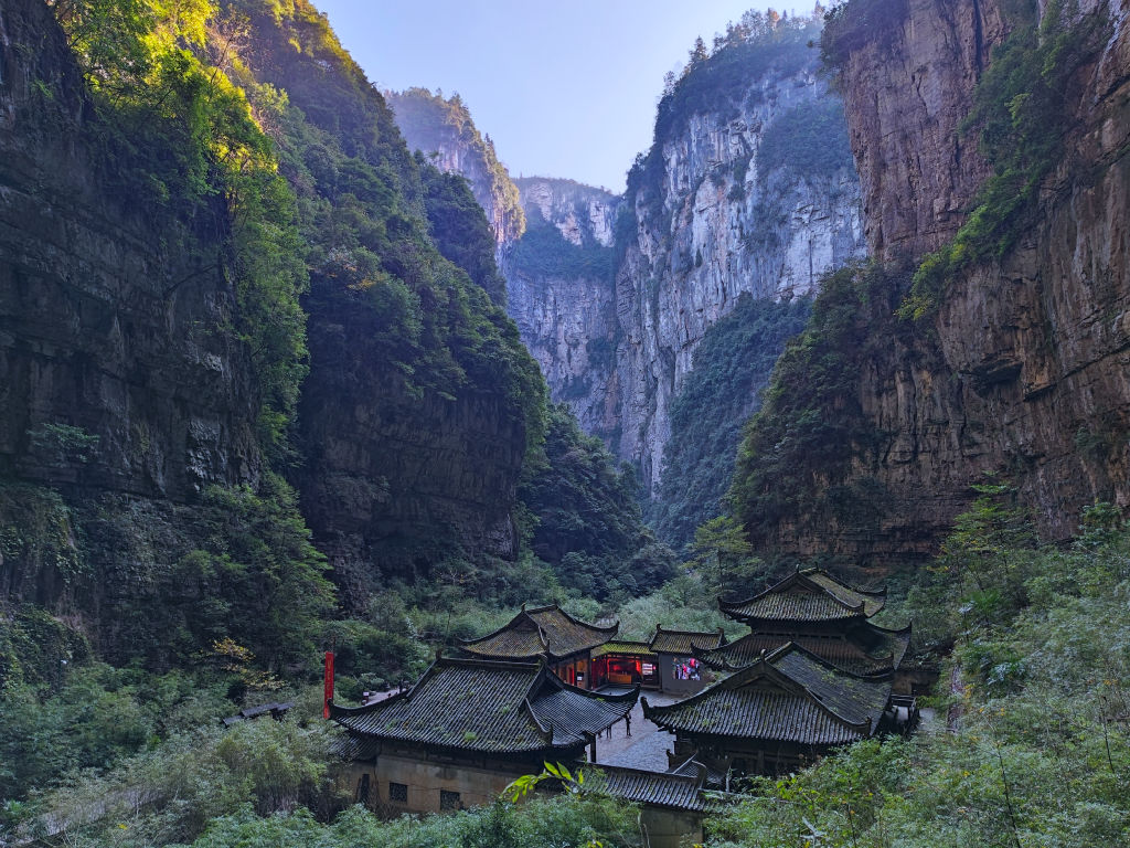 Chongqing est une municipalité mais la plus grande partie de la "ville" est en fait composé de campagne au charme fou. De belles montagnes traversées par de grands fleuves, comme les trois gorges du fleuve bleu, mais aussi la chaine de montagne de Xiannvshan qui est une destination fascinante pour un week-end. Puis ce temple, qui semble isolé dans cette fracture de karst classée par l'Unesco et qui est tellement photogénique.