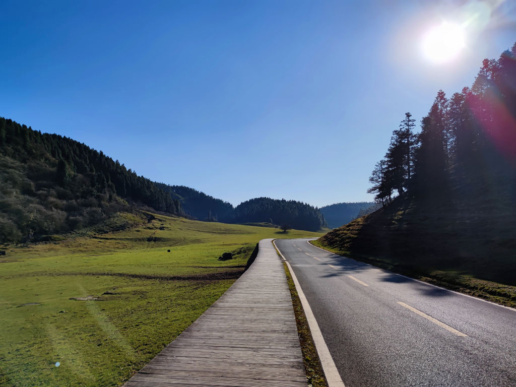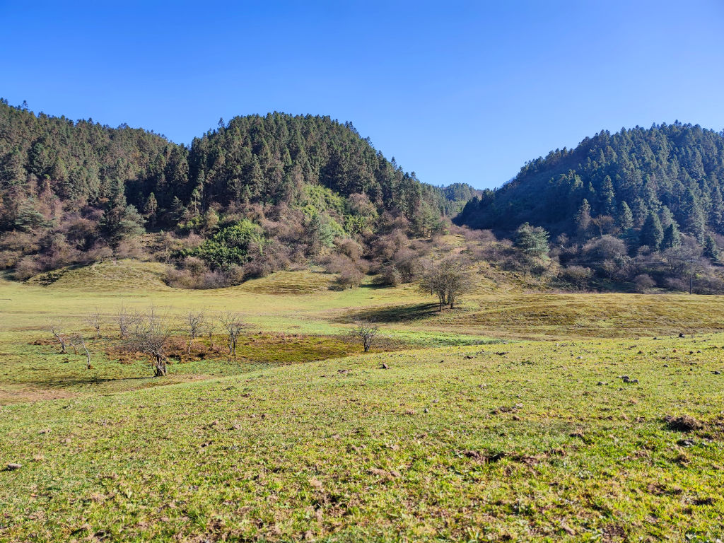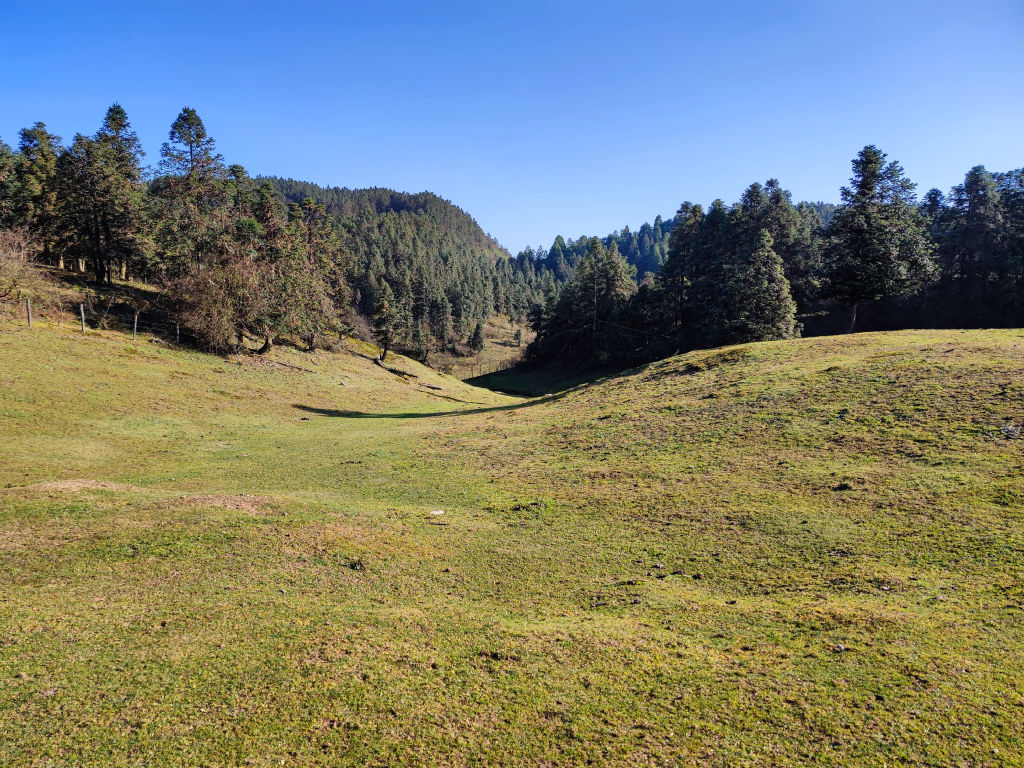 Après un repas un peu cher dans un restaurant en bord de route qui n'avait pourtant rien de particulier, on récupère la voiture et on monte jusqu'au plateau de Xiannvshan. Ici aussi, les procédures pour rentrer en tant qu'étranger sont longues, mais la personne en charge des billets est très agréable et rend le processus tout à fait supportable et sympathique, ça change de la réceptionniste de la veille. En tout cas, pour le moment on ne peut pas dire que Wulong est une région très accueillante globalement. Peut être que ce n'est pas encore assez développé pour que beaucoup d'étrangers viennent jusqu'ici, donc ils ne savent pas comment faire. Le plateau de Xiannvshan se découvre d'une manière originale, en prenant un petit train qui fait le tour de grasslands au charme alpin incroyable pour le Sud Ouest de la Chine. Le fond de l'air est frais, on voit des sapins, des chevaux et des chèvres en liberté. Il n'y a pas beaucoup de monde ici, mais est ce que l'on est toujours en Chine ?