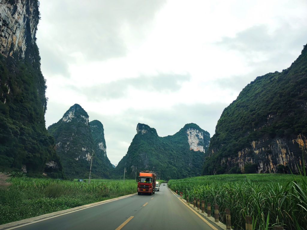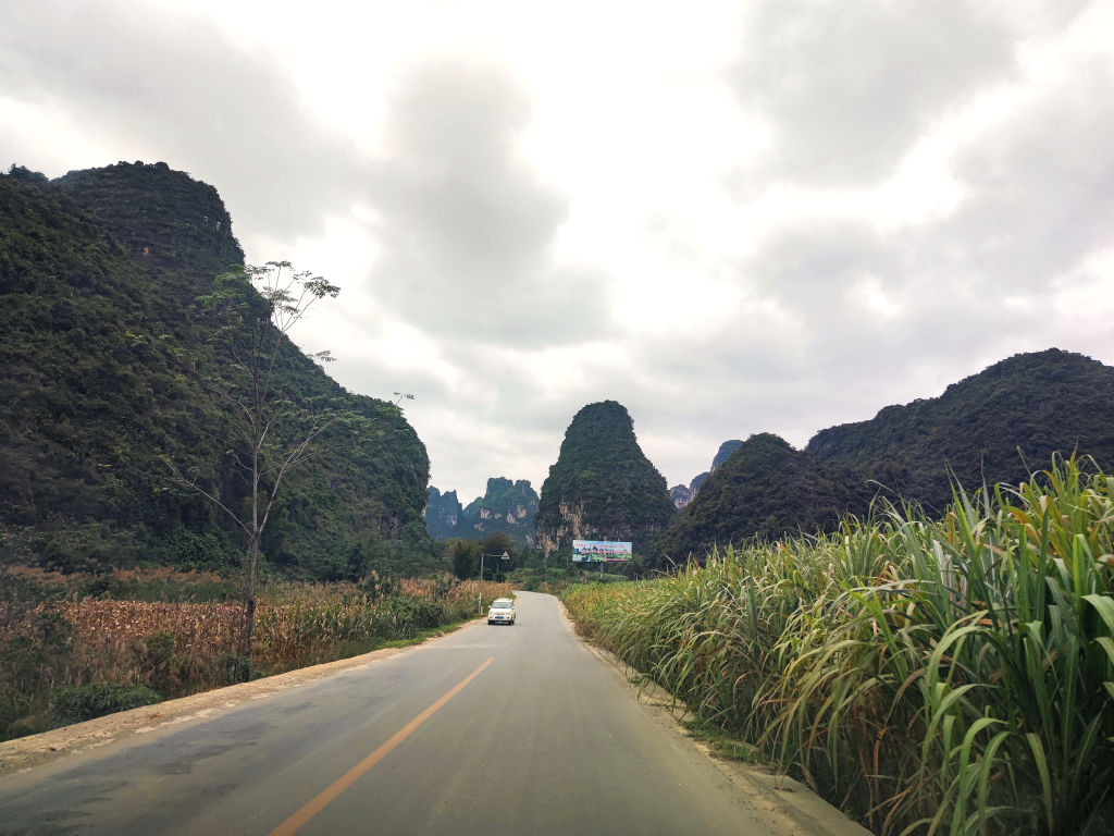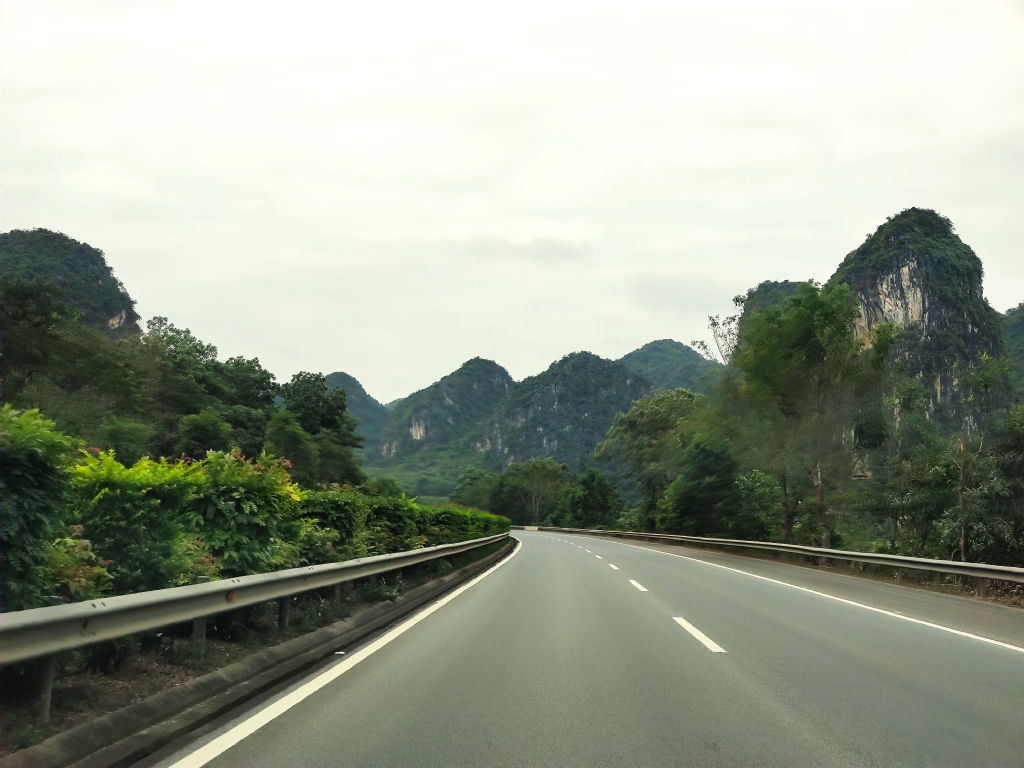 L’autoroute passe au milieu d’un paysage de karst de plus en plus impressionnant à mesure que l’on approche de Daxin. C’est un régal de conduire sur cette route qui slalome entre ces pics de karst.