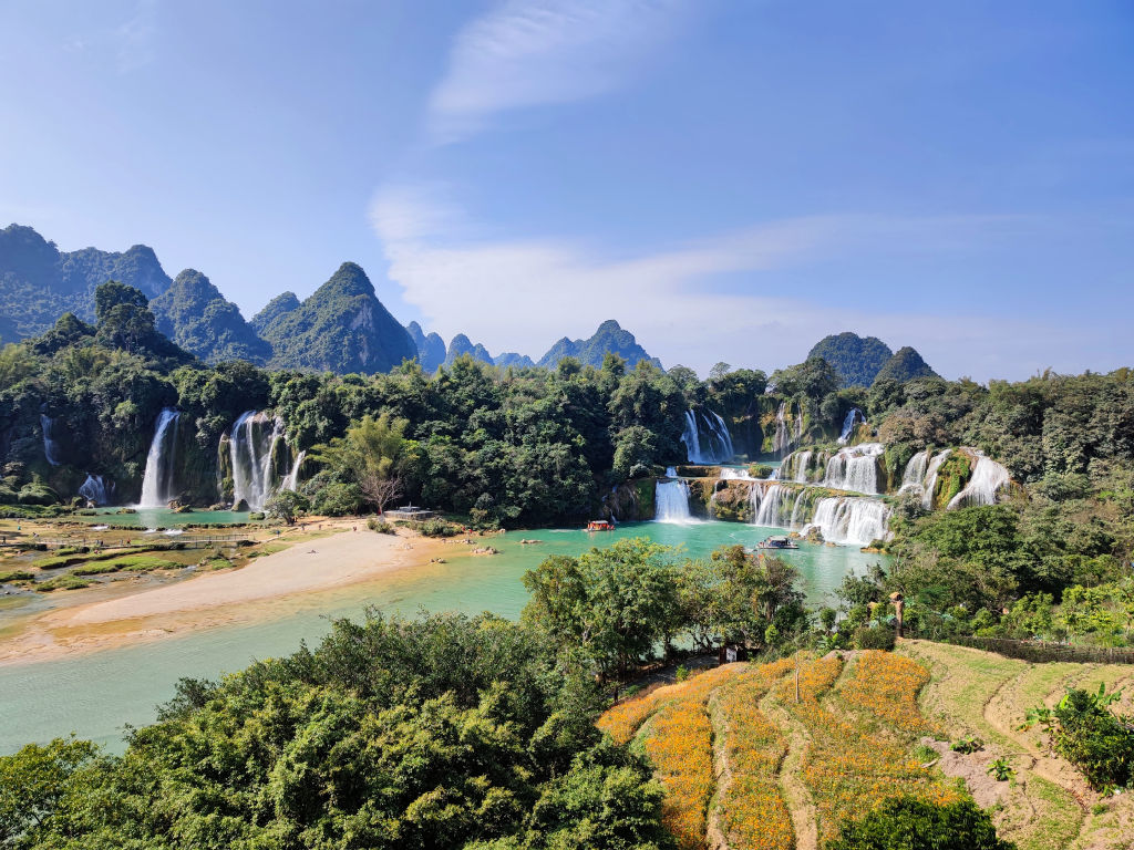 Les chutes de Detian sont en tout cas magnifiques, sur une longueur de 200 mètres dont la moitié est donc en Chine et l’autre au Vietnam. Il est bien entendu interdit de traverser sous risque de sérieux problèmes.