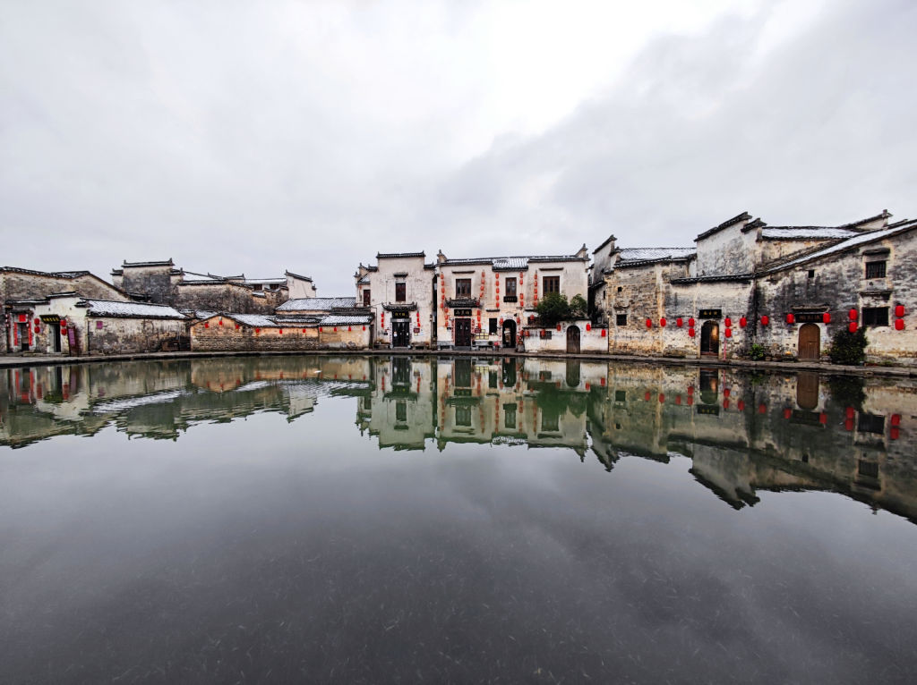 Le village de Hongcun dans le Sud du Anhui fait partie de cette collection de villages traditionnelles d’architecture Huizhou les plus beaux emblématiques et touristiques. D’ailleurs Hongcun est probablement le plus connu et le plus visité de tous car situé à proximité de Huangshan. Nous avons la chance de découvrir Hongcun lors de la basse saison, sous une fine couche de neige qui ajoute encore au romantisme du lieu.