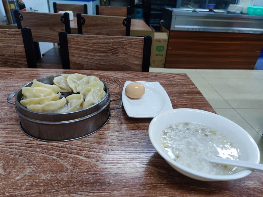 Ce matin je ne fais pas la même erreur que la veille et je prends un petit déjeuner solide avant de partir. Je trouve un petit restaurant qui sert des raviolis, un bouillon de riz et un œuf, de quoi avoir assez d’énergie et ne pas avoir un coup de fatigue extrême comme la veille. J’ai acheté aussi des snacks pour la journée.