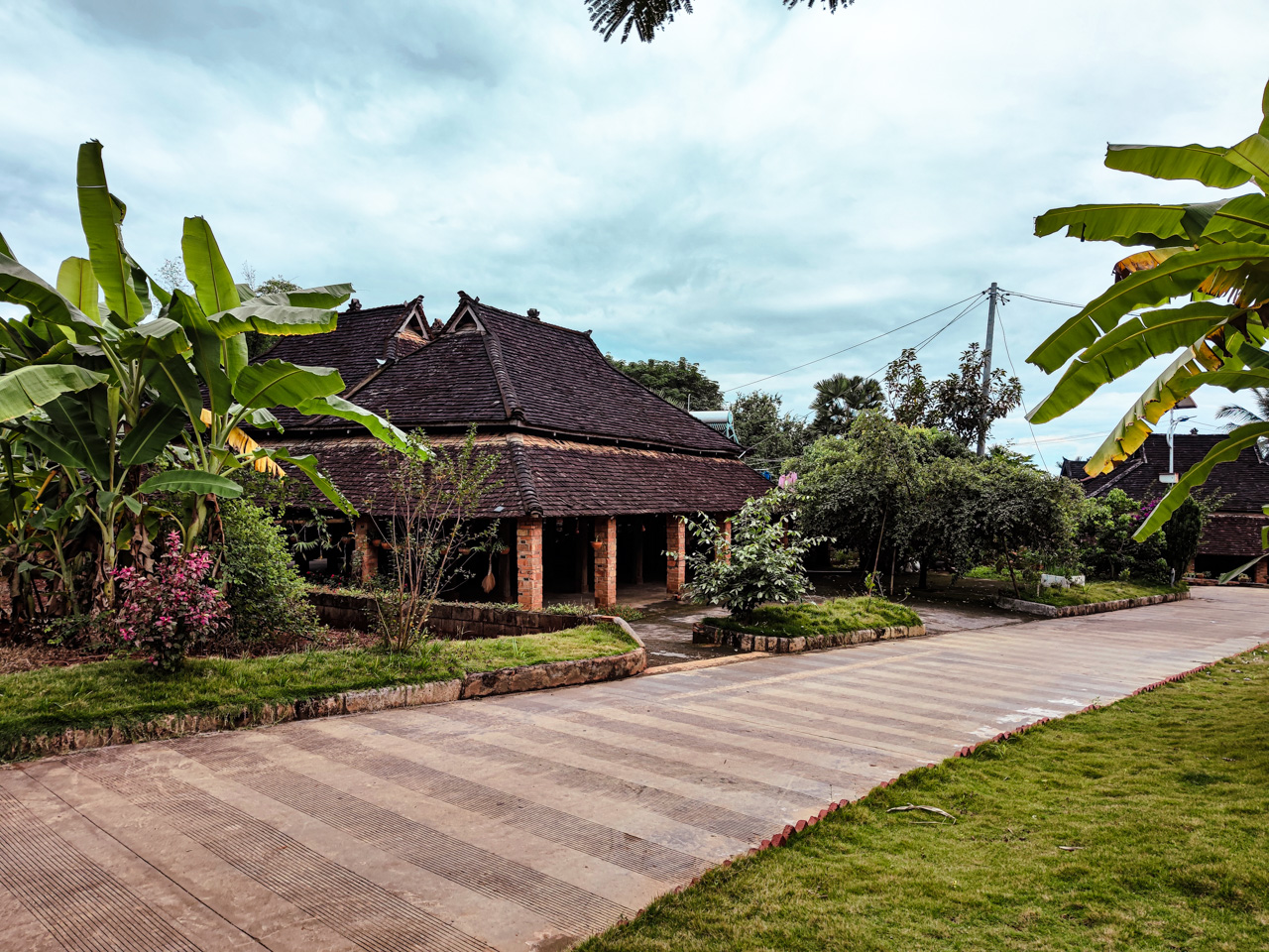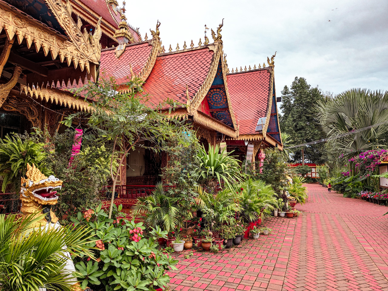 On arrive au temple du village, les jeunes moines passent la journée à jouer au basket en jupe et tongs, leur niveau n’est pas mal du tout, donc le temple lui-même est vide à cette heure-ci.