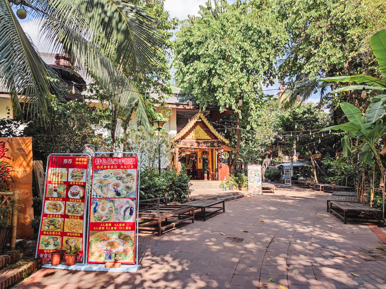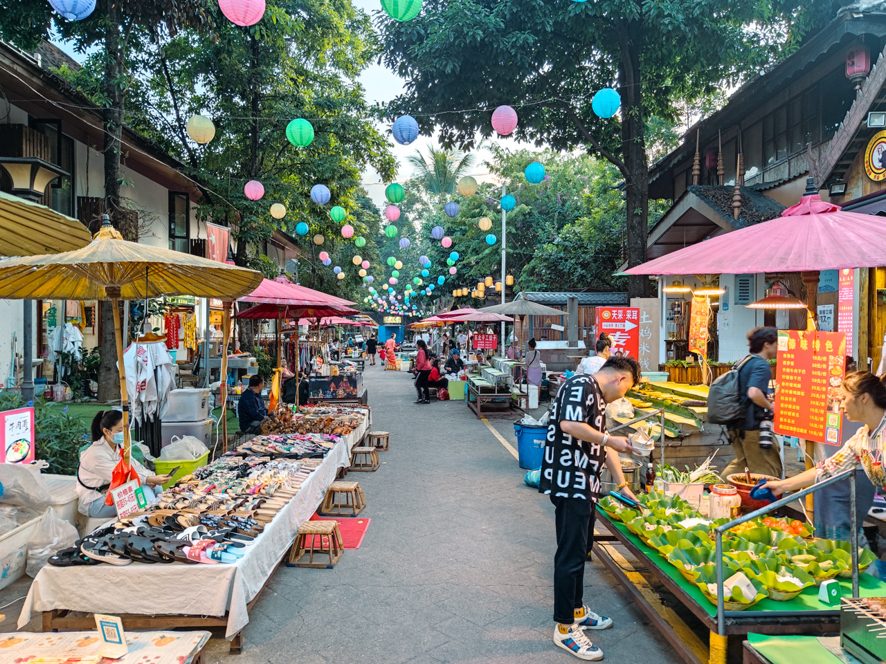 Le quartier touristique de la ville se concentre autour du marché de nuit de Jinghong. C’est dans ce quartier que l’on ressent le plus l’effort de planification, le résultat est admirable. On sent que le Xishuangbanna est une région développée sur le tard et donc bénéficie du retour d’expérience des autres villes touristiques de Chine. Il y a des arbres partout, un rappel architectural à la culture Dai, des rues très bien agencées, on sent que l’on est dans une zone touristique, mais on vit l’expérience avec plaisir et on ne ressent aucune contrainte à ce développement. Il y a beaucoup de restaurants et cafés qui font un bel effort pour décorer et s’embellir.