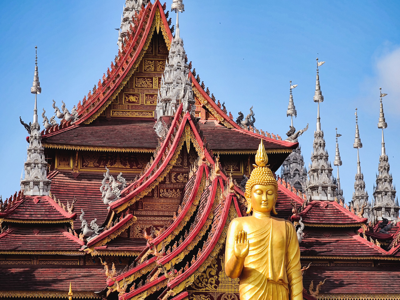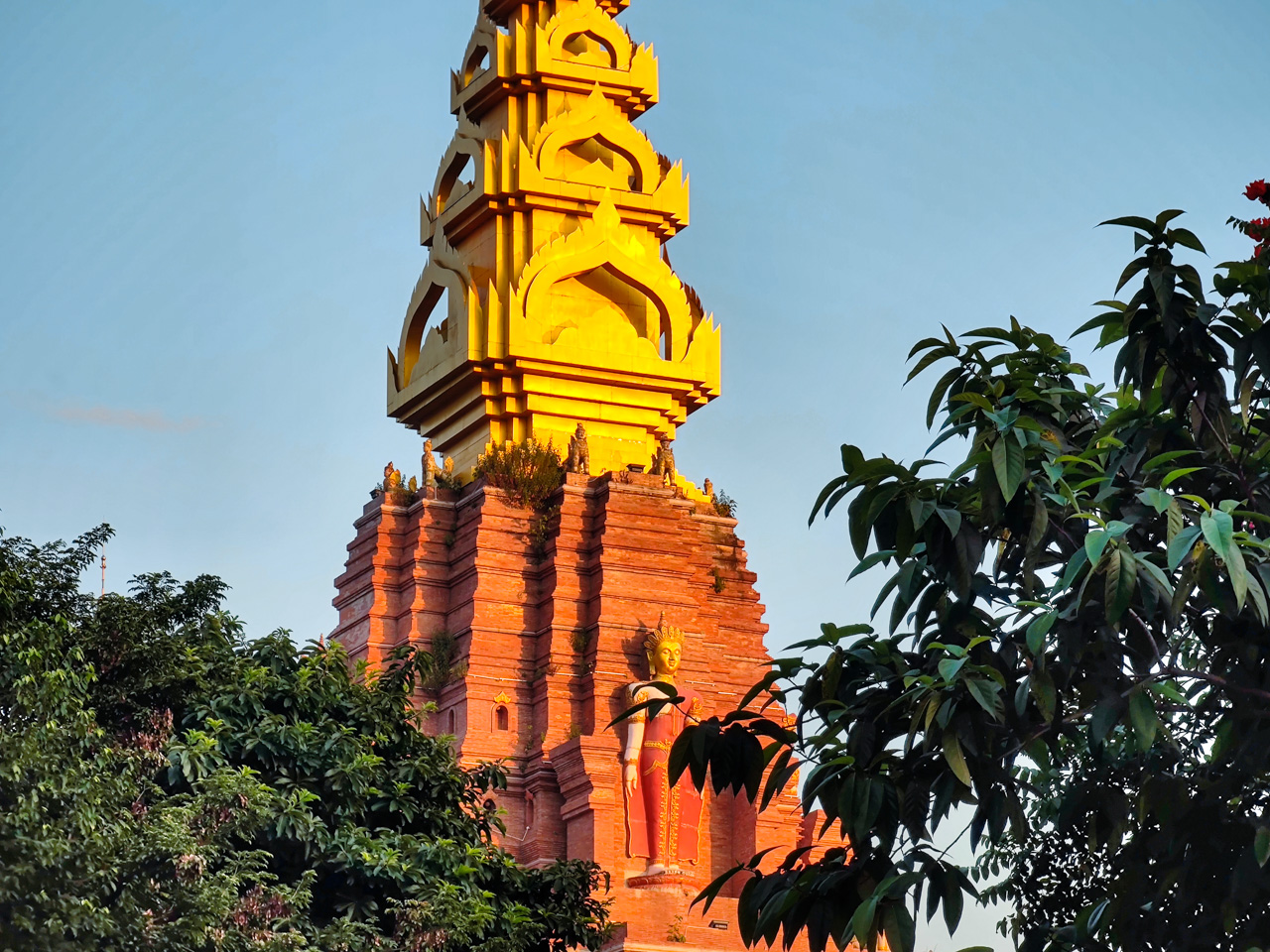 Au centre du village, on trouve un monument avec une pierre recouverte de couleur dorée, qui ressemble énormément à ce que l’on peut imaginer de l’autre côté de la frontière en Birmanie.