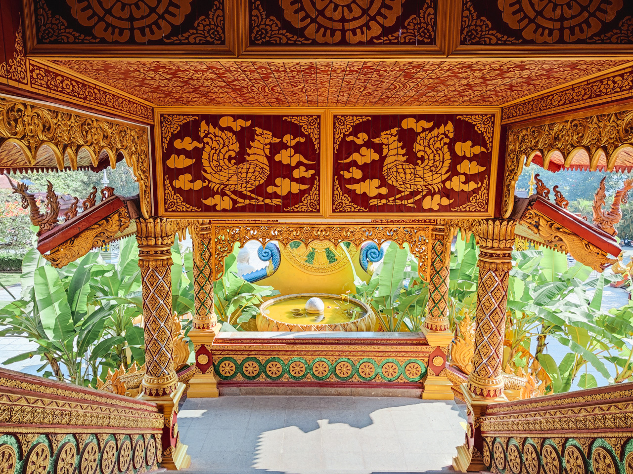 Ici aussi, au centre du village on retrouve un monument avec une pierre dorée dans un pavillon.