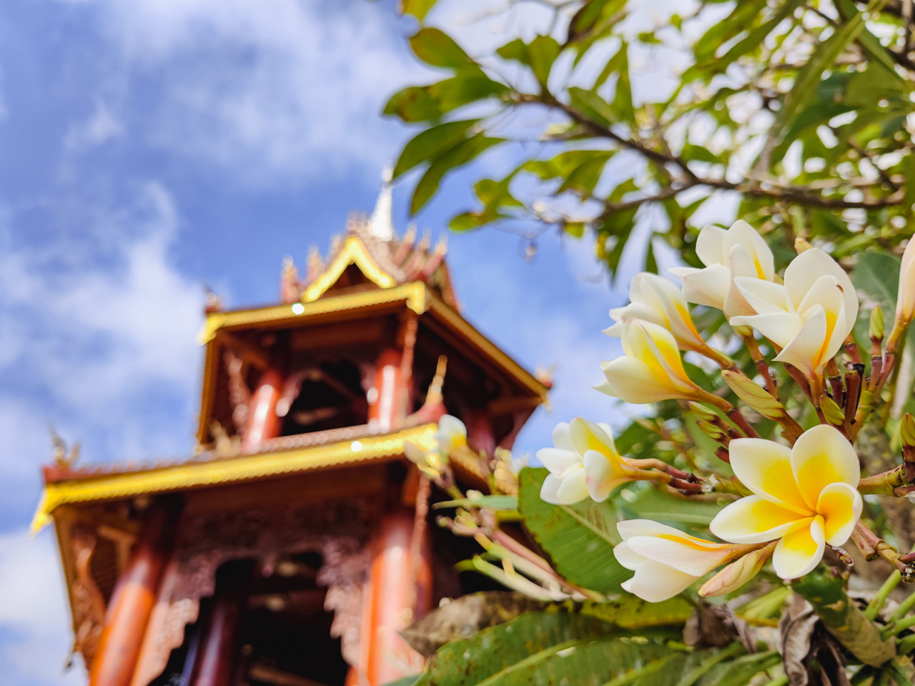 Musique à fond, stands qui vendent des souvenirs, étals pour manger des brochettes en s’installant au bord de l’eau avec une bière laotienne, il ne faut en aucun cas manquer ce marché. Nous y reviendrons plusieurs soirées pendant notre séjour tellement cela nous a plu.