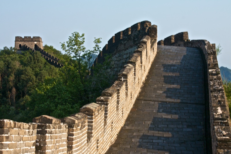 Pour la meilleure journée, en terme de temps, nous sommes allés à la muraille de Chine à Mutianyu. En passant par le village dans la vallée suivante nous accédons à la muraille en évitant la zone touristique et arrivons directement en contre bas du grand mur. C'est la deuxième fois que nous parcourons ce tronçon.